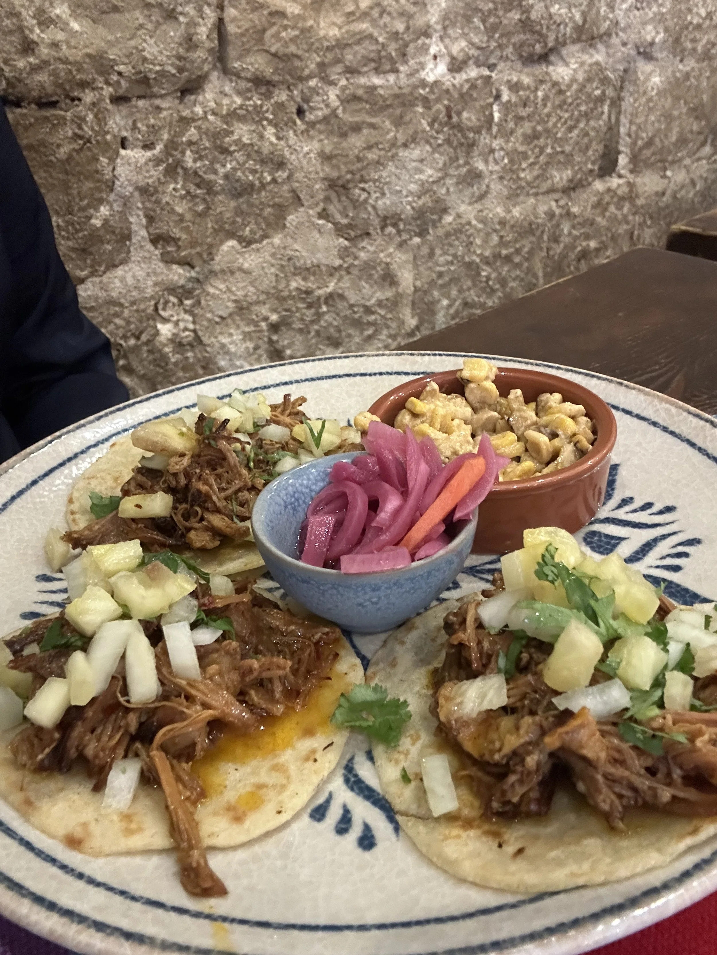 By the time we got to the apartment, let ourselves in… got settled, we had worked up quite an appetite. Inside the palace walls we found a maze of alleyways full of restaurants. Our challenge was finding something that fit my absurd dietary restrictions and Barry’s pickiness. It seemed that the seafood restaurants had fresh fish and only fresh fish. The places with meats tended to fry their fish, which wouldn’t work for me. After roaming for a bit, I noticed a place that I read about with great reviews. I remembered it because the name was unusual… To Je Tako. Their corn tortillas were homemade, and the tacos were yummy! We had a cocktail to top off the meal. Cute decor, great service and fresh tasting food. It turned out to be a great choice!