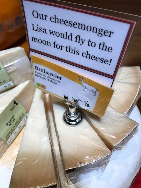 I love this place! All the fruit, food and wine stands! We decided to enjoy our beautiful room at the Hyatt by purchasing some cheeses, french bread and opening the wine we brought with us. I had to laugh when I saw this sign... of course, we bought the cheese :-)