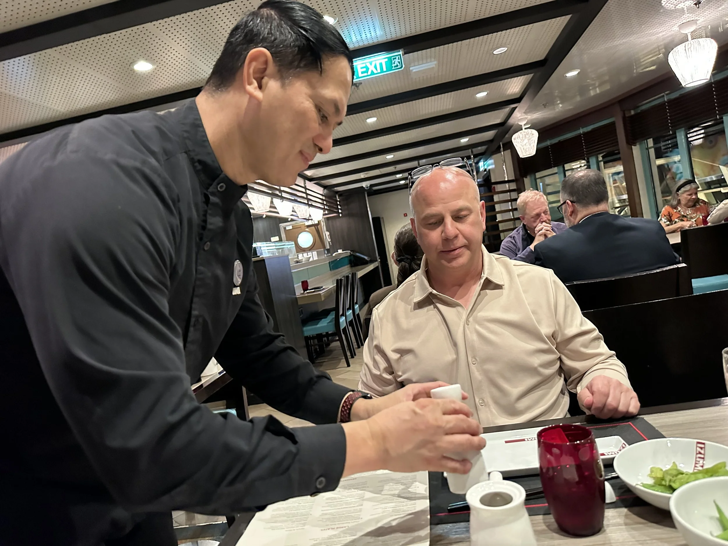 We met up with Chris at Izumi’s Sushi. He had been there in the afternoon, so was already famous when we went for dinner. That’s one thing about the cruise ships. Employees ALWAYS remember names… it’s absolutely unbelievable. Only takes one time meeting and we are friends for life! Dinner was great. I had a Champagne Lobster roll and Poke Bowl. This time, I did not bite into a giant piece of wasabi thinking it was an avacado.