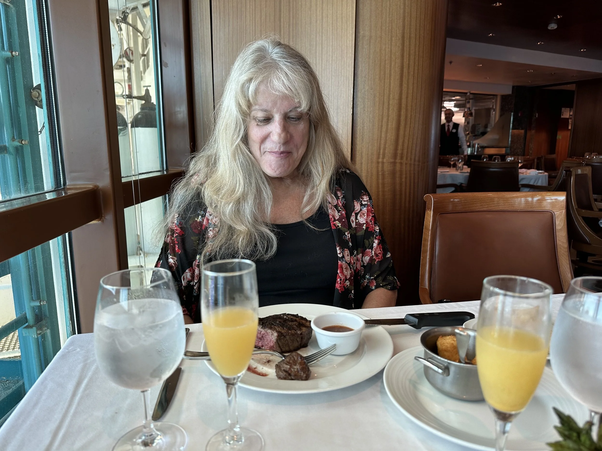 Lunch was fantastic in Chops Grill. We are cruising bougie style… pretending to have money! haha Mimosas, steaks… deliciousness!