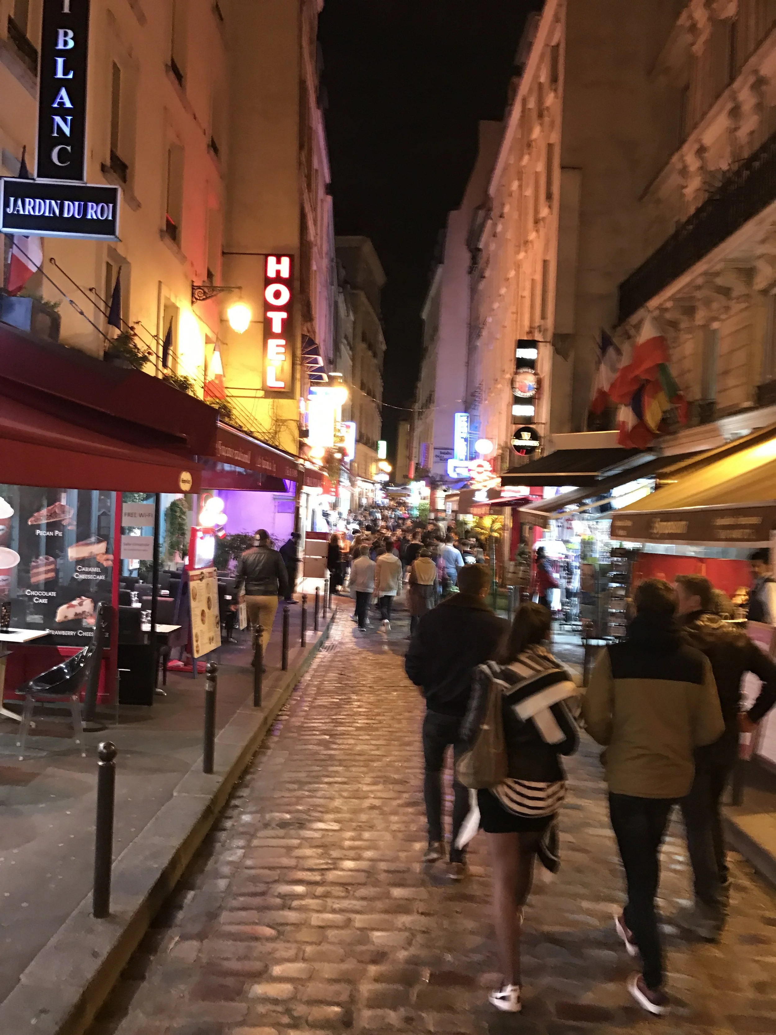As we left our dinner locale, we crossed the street to begin heading home. Back on the main street off the Seine, we noticed this restaurant. People waiting in line outside, laughter... music... this was a popular spot. I'll have to track it down to check it out next time.