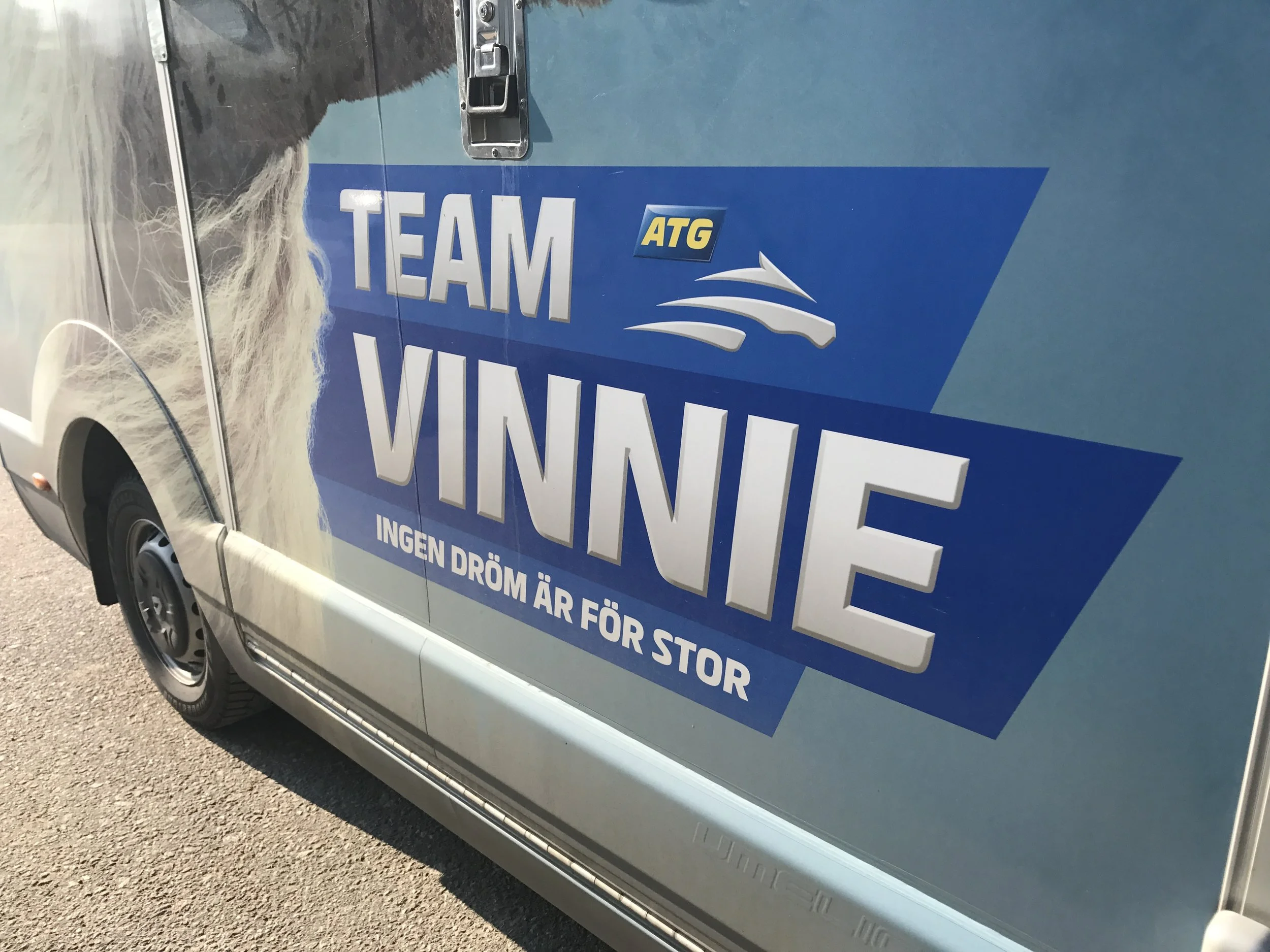 At the same stable where High Ambition boards, is a stable with "movie stars". Team Vinnie is famous in Sweden. Signs are posted everywhere to not post pics on social media and I will respect that... but I did take photos and had a great time being in the presence of the famous! Their van was out front of the stable. I figured that taking a photo of the van would be okay...