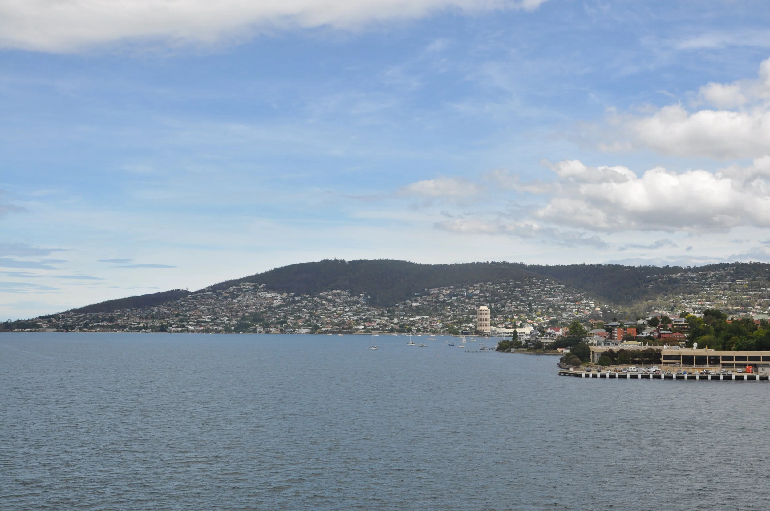 Opened my eyes to this... looking off our balcony, I had my first view of Tasmania. Lots of little islands... more built up than the islands of New Zealand we visited in the fall. Better grab some coffee and explore!