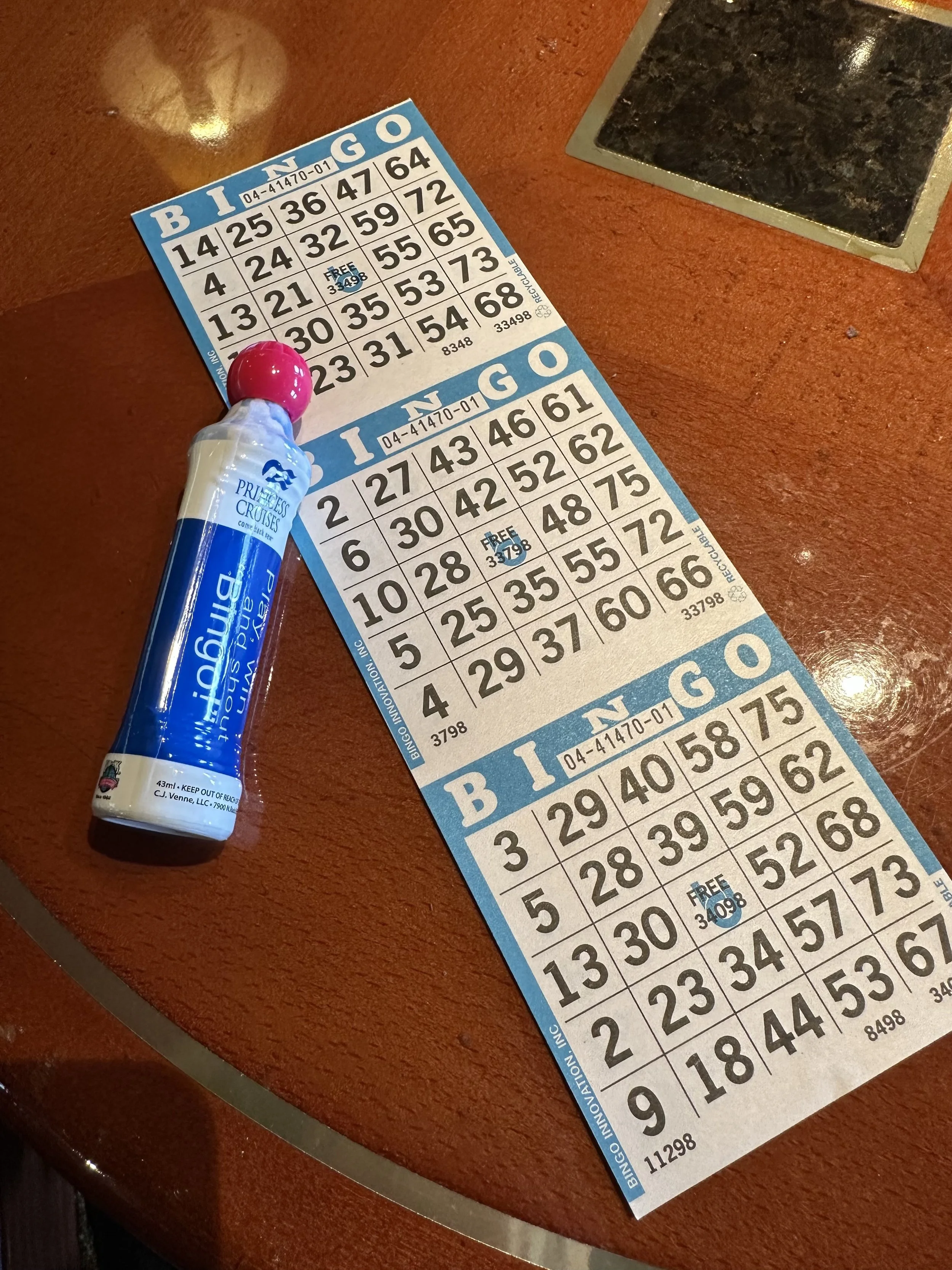 Our afternoon was filled with games. The casino gave us four “Deal or No Deal” cards. Played in the Princess Theater, we didn’t come close to winning… it is suggested that everyone have their cards scanned to check for winners. Knowing full well, we had only won a single $5 Scratch Card… the casino host said we won a Bingo card also. So forty-five minutes after the first game ended, Bingo started on the opposite end of the ship. Again, no winning tickets… not even close! It was still quite fun.