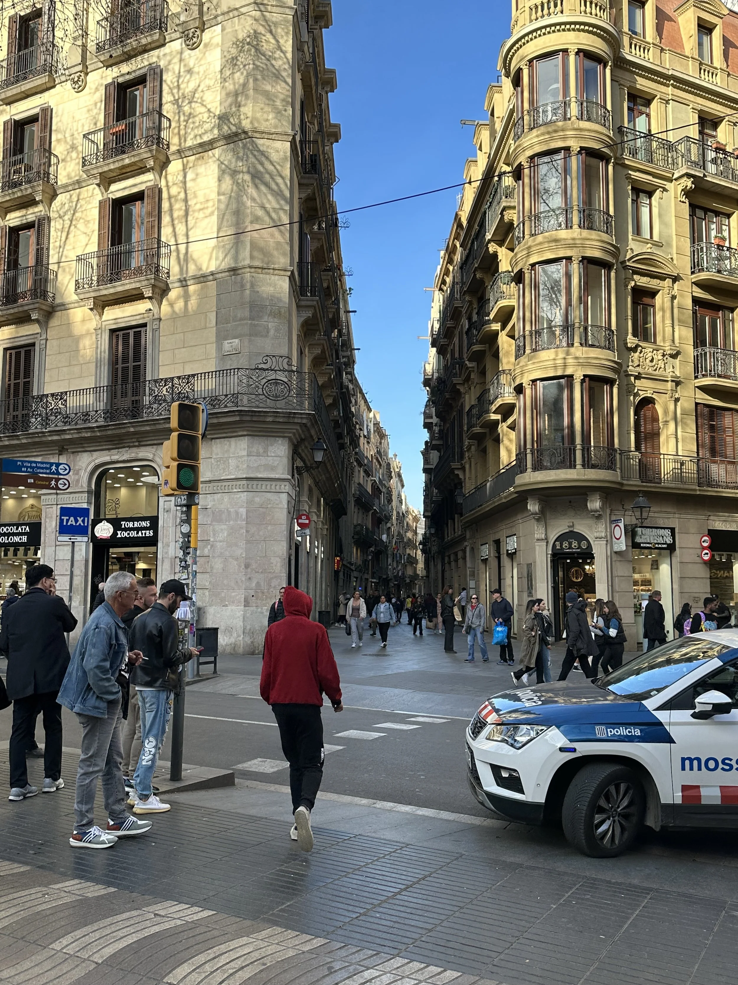 Catching up from a slight case of jetlag and getting a bit hungry, we walked through the Gothic area to reach Placa Raeal. Always lively, we chose a sidewalk table at Rossini’s Italian restaurant. We have had several incredible meals in the past but it our friends did not get very good meals. I still liked mine.