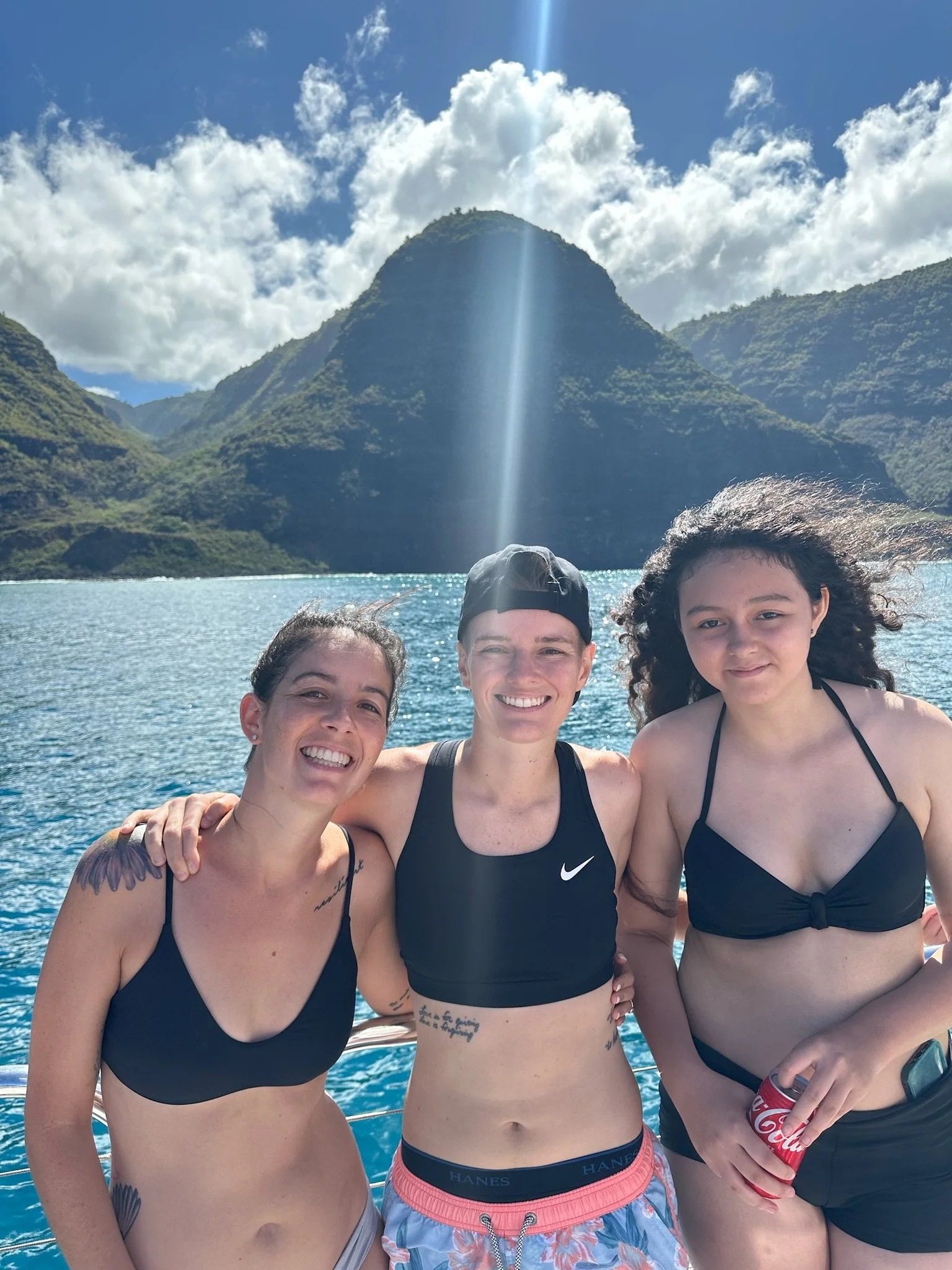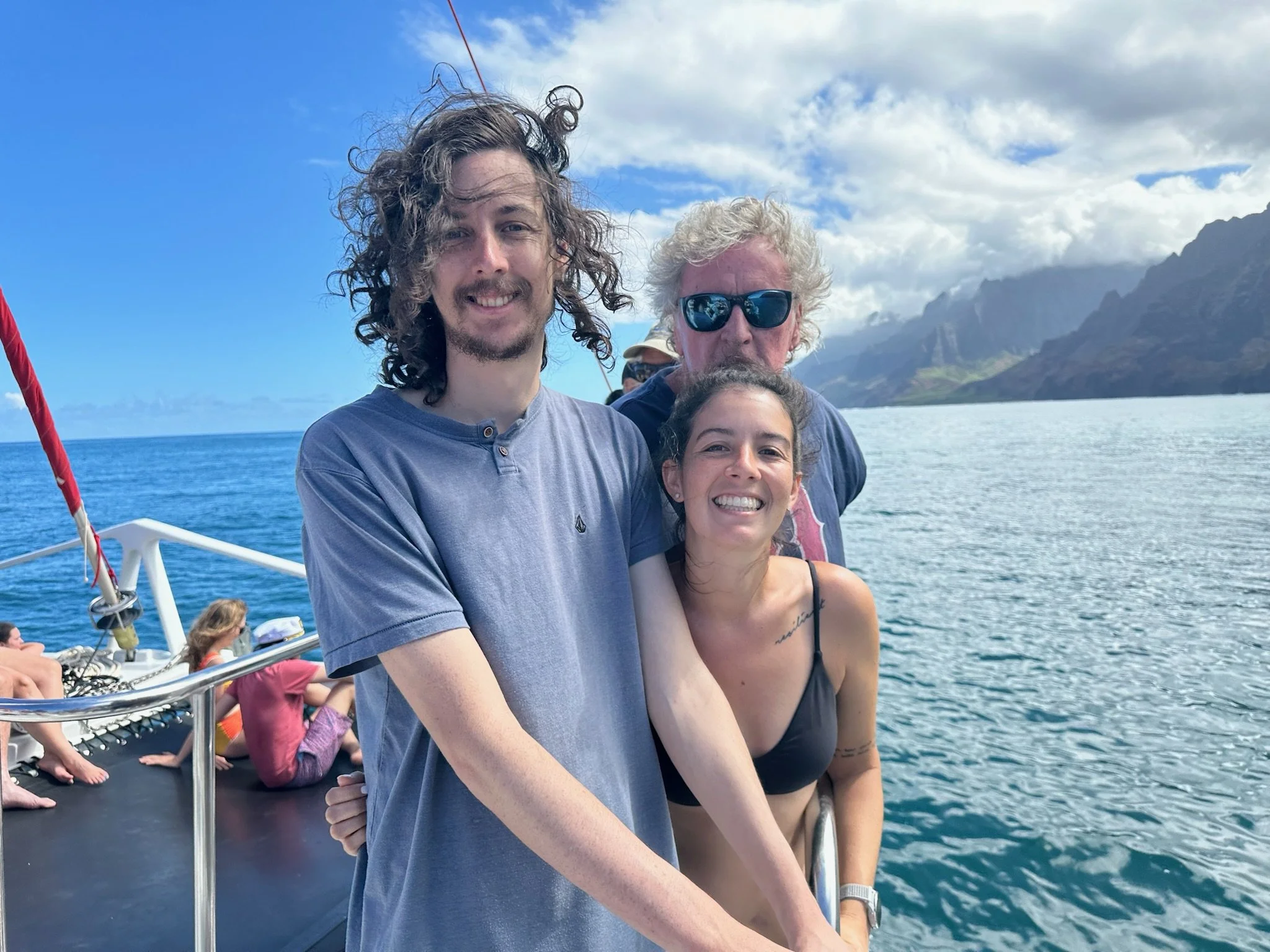 While I slept cozy in my bed, half the family went to Captain Andy’s and half went to the North Shore to see waterfalls! Mr Chuckles watched as the catamaran left Port Allen. Back in the day, the kids and I used to sail on Andy’s boats relatively often. He’s a friend and loved letting this “single mom” on to give her kids a great memory. Decades later, it’s still an exciting event!