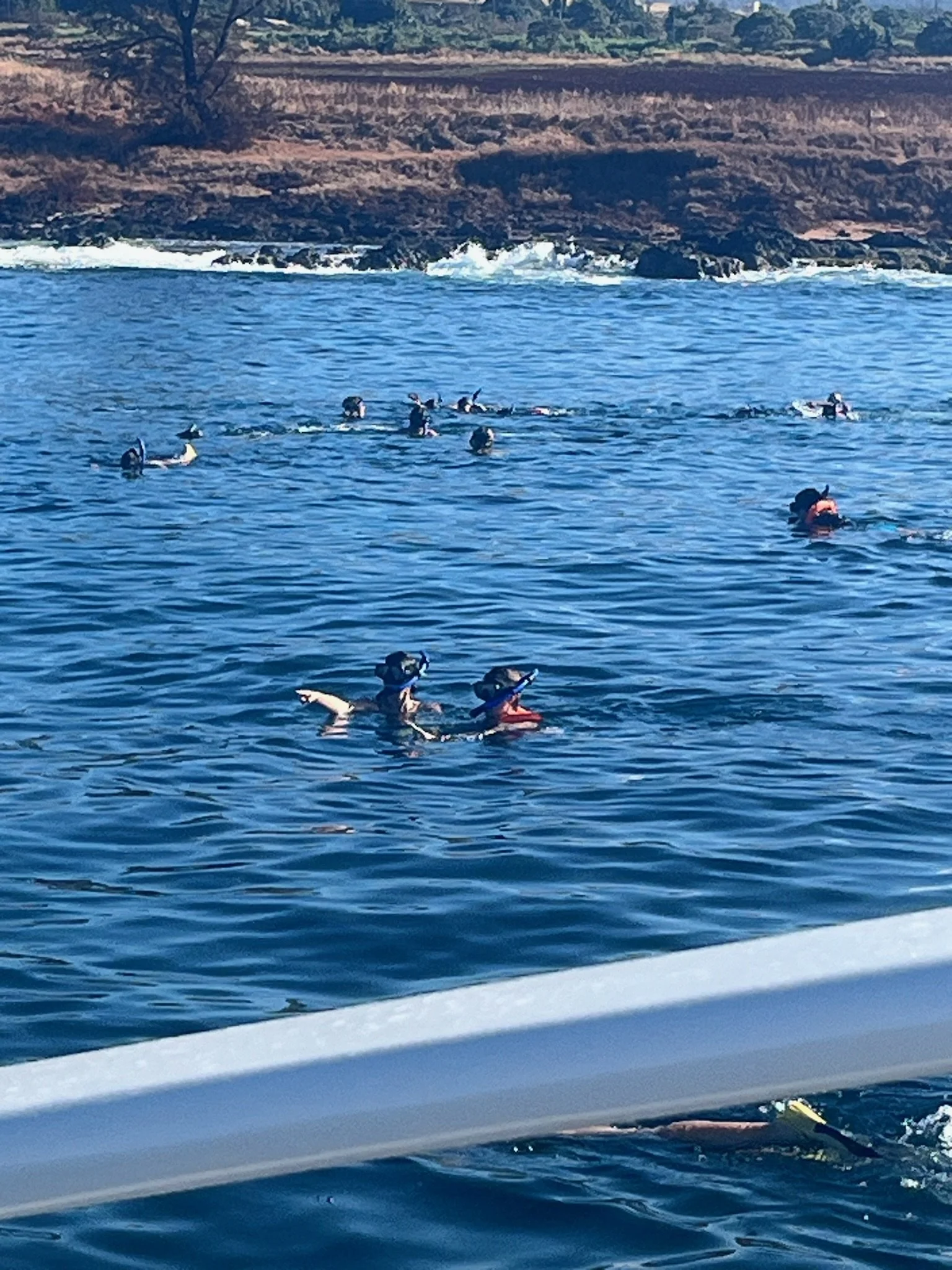Certain boat trips will go inside the caves found around this section of coastline. Actually, this is just below the spot where the kids were exploring Waimea Canyon/Kokee. The Catamaran sails right below the Kalalau Valley… Another fun part of these boat tripsis getting to snorkle. Usually, a very “fishy” area is selected. Apparently, dolphins followed the boat but I’ve seen no photographic evidence :-)