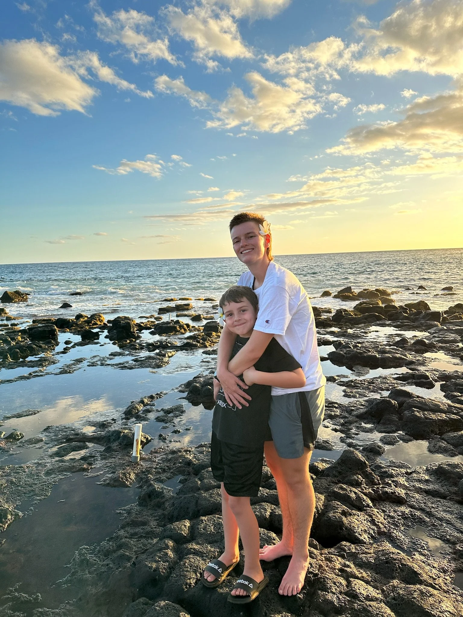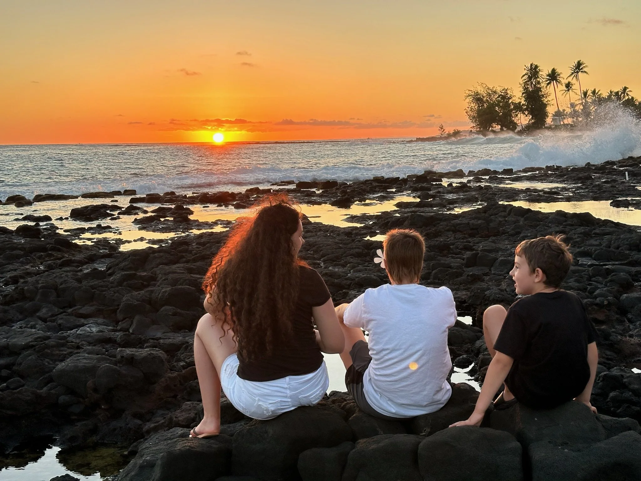 Joining in the fun… both kids decorated themselves with a plumeria. Each with a beautiful Hawaiian name picked out by the Aunty U’i, this island feels like home to them.