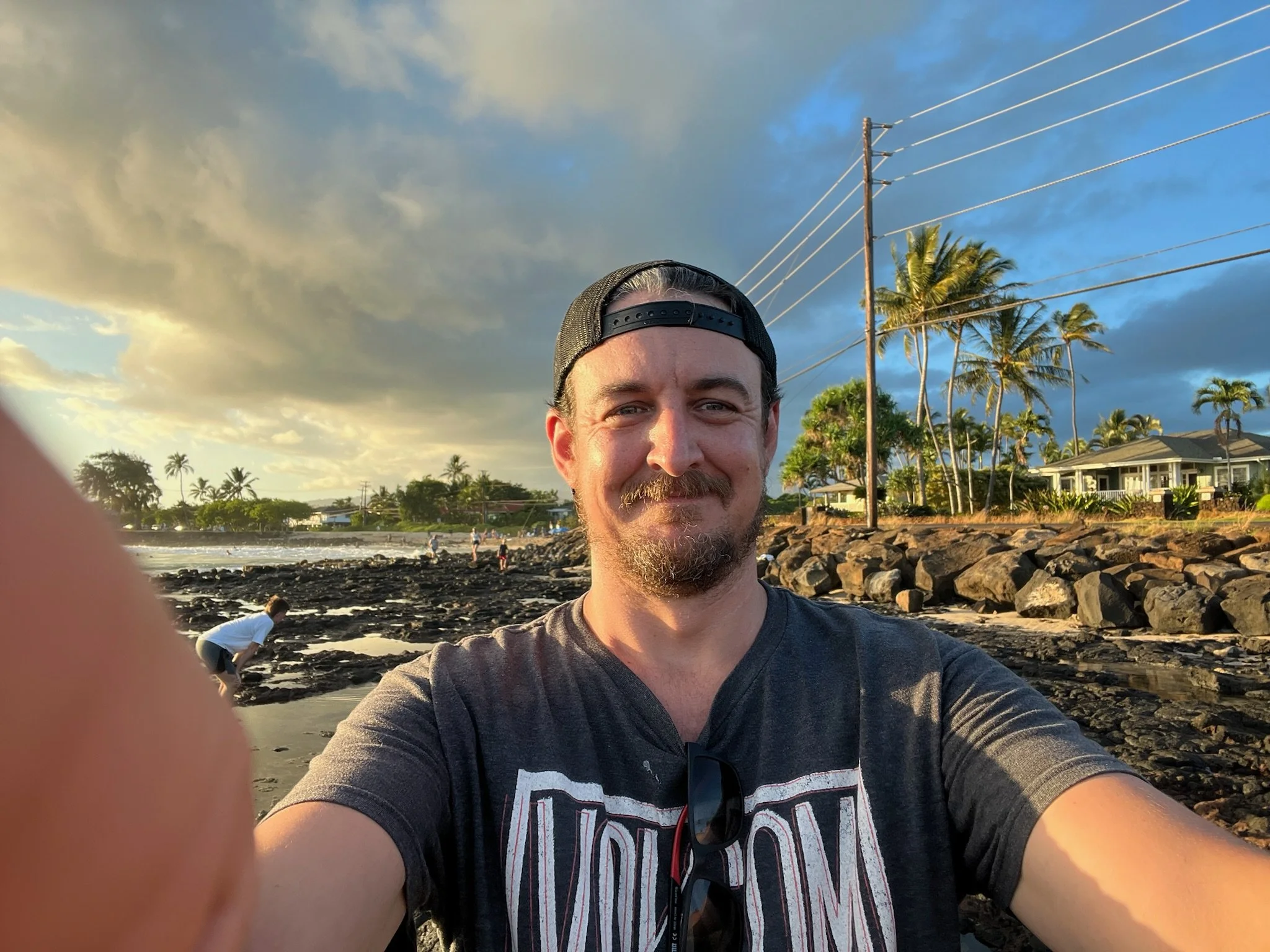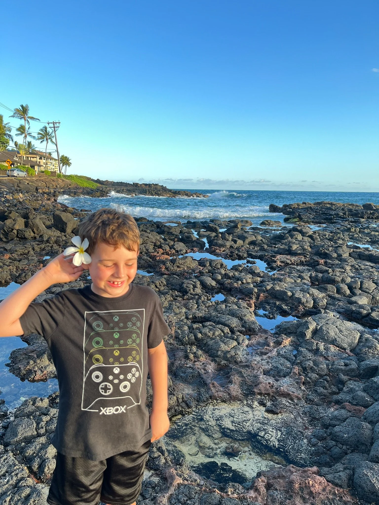 Getting in the spirit… Mr Chuckles picked up a plumeria and placed it behind his ear. Kauai is one of his happy places so I’m pretty sure he was enjoying the family time. Due to his sore knees, walking down on the uneven reef was not possible. So basically, the kid’s parents are falling apart haha!
