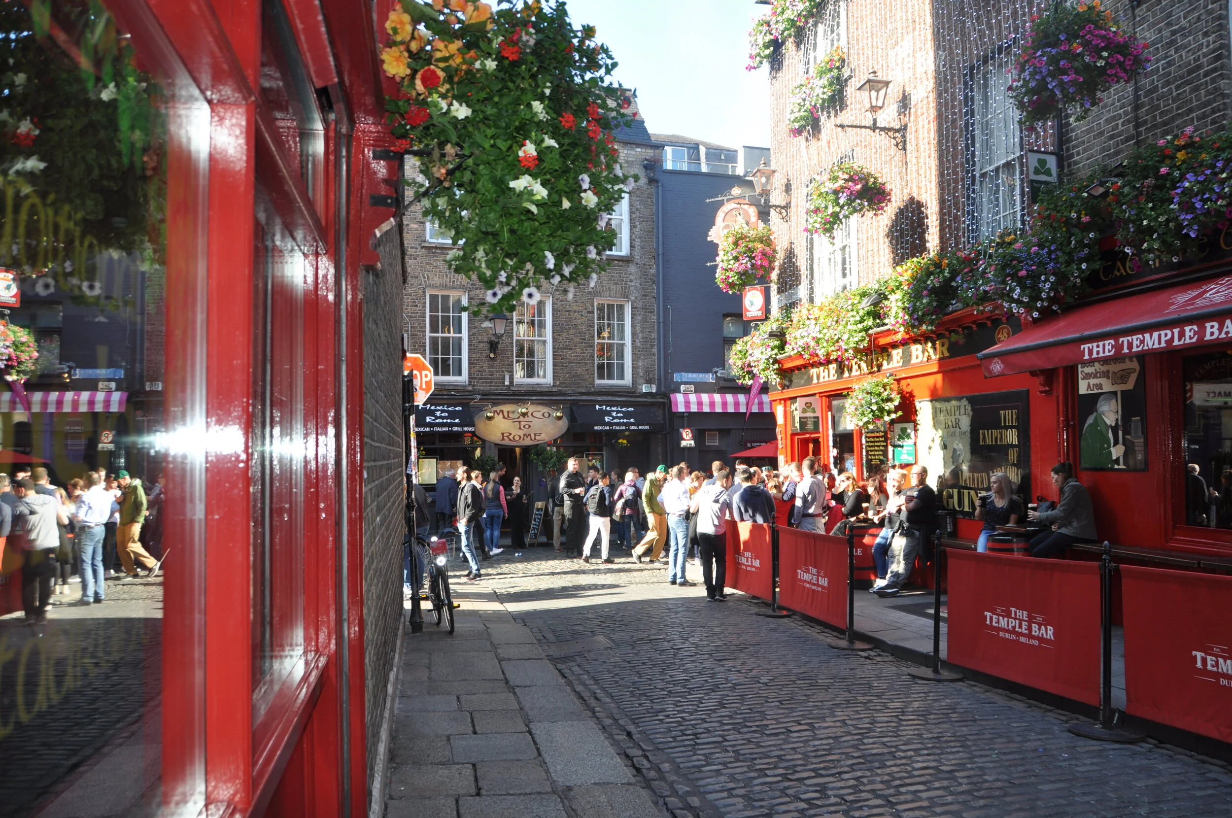 So much fun! We met our friends from Adare (via Croatia and Peru) for a drink. Once finished, we walked outside and admired the Temple Bar area. Previous visits, we were careful to avoid this area. Actually visiting, we ended up loving the social aspect, the lively atmosphere and the flower lined street.