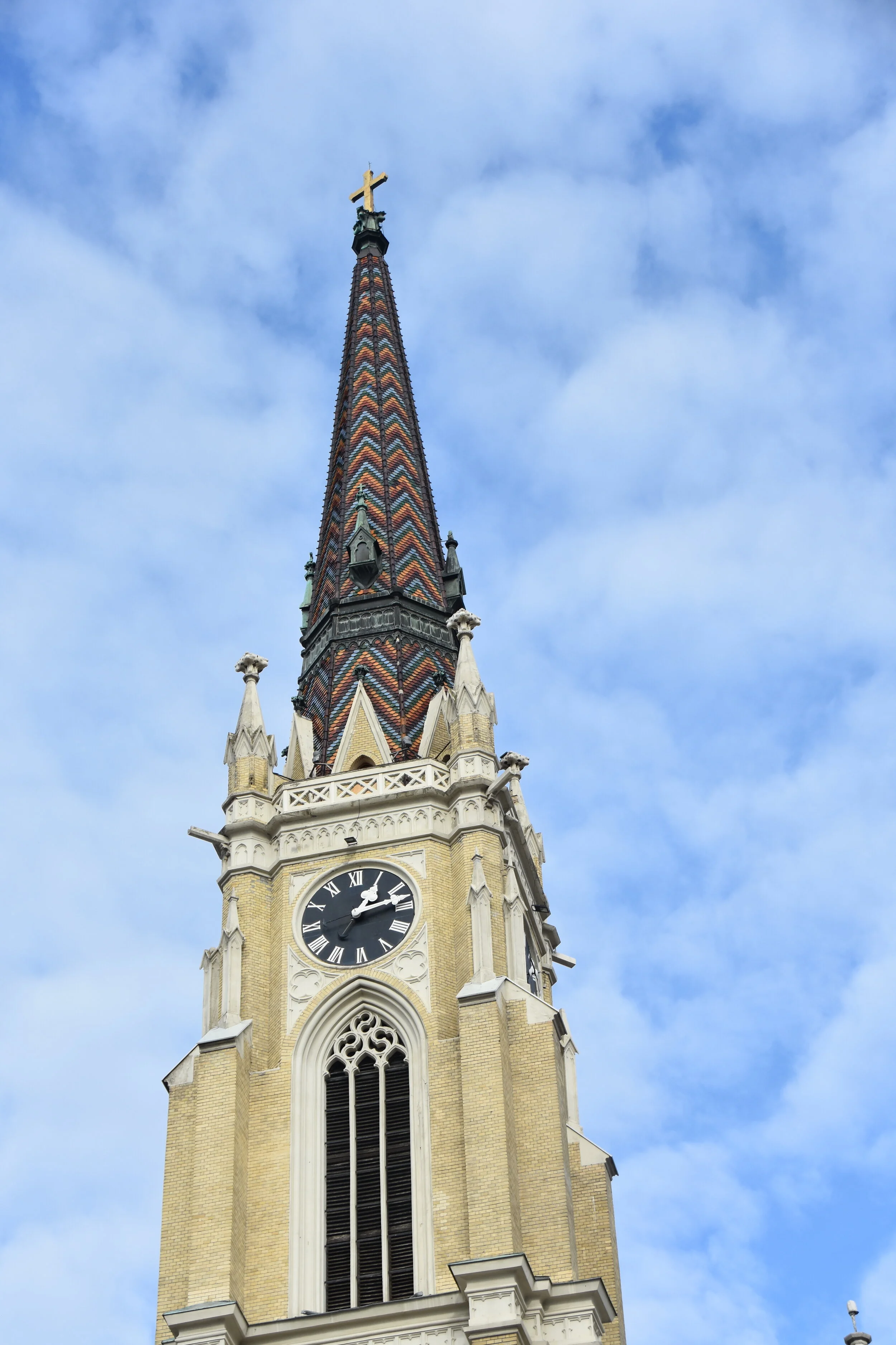 From a slightly closer perspective, it is possible to see something interesting. Within very close proximity are several churches: Serbian Orthodox, Greek Orthodox, Catholic, Greek Catholic, Protestant, a synagogue and a mosque…. all beautiful. My “one a day” selfie again was a fail… I blocked the clock! It’s too much stress to only have one click. Ha! … one last view of the Danube from above. The clouds were awesome, the river mighty! Every time I see it, my mind wanders with the desire of starting at the head of the river and following it to the end… through ten countries!