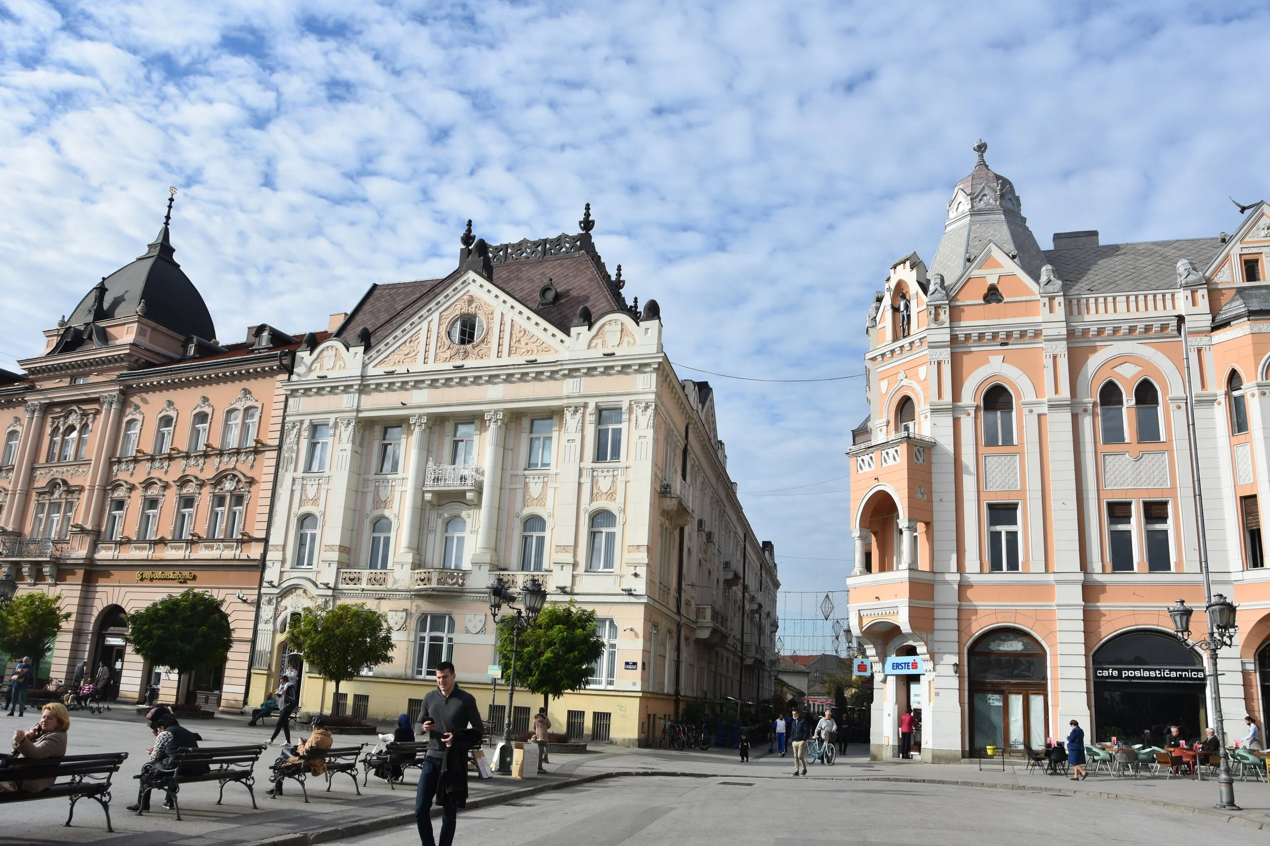 Standing in the middle of the square, a flock of birds took off from one of the buildings… they flew round and round in a circular motion. Just added to the incredible feeling of Novi Sad.