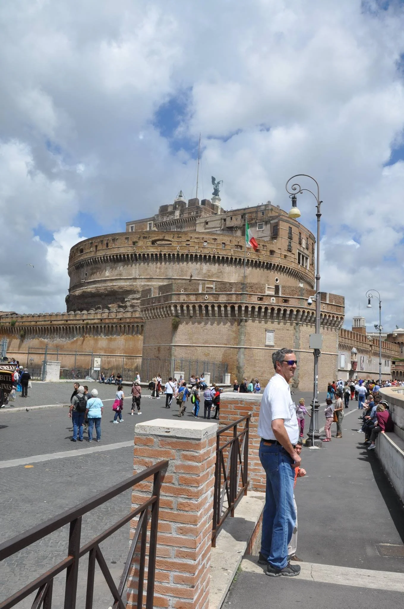 Not one to be overly impressed… I caught this photo of hubby obviously soaking in the experience. He was situated in a spot that overlooked the Tiber River straight ahead… the Castel Sant Angelo to the left and St Peter’s Basilica to the right. Unaware of the passersby, he just surveyed the sites.