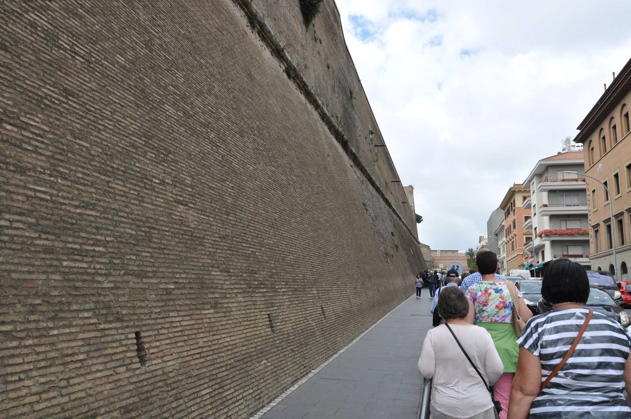 Ships arrive in Civitavecchia, Italy. Quite a distance from the port, the heart of Rome is reached by bus or train. We chose a ship excursion by bus… dropped us off right new St Peter’s Basilica. Our bus ticket came with a “skip the line” entry to the Vatican. This giant brick wall lines the Pope’s home.