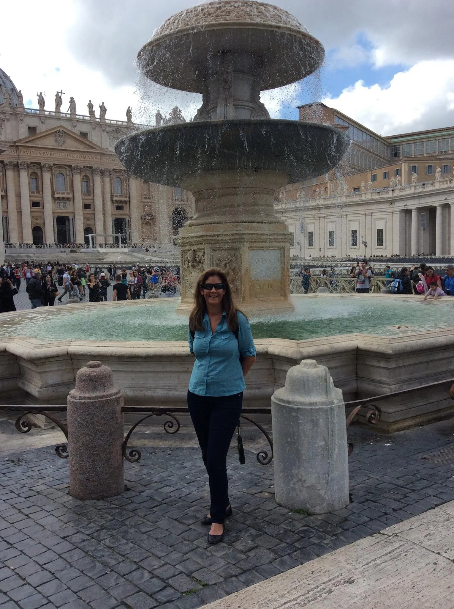 Seemed a great idea to pose in front of the fountain… behind me, people gathered awaiting the arrival of the Pope. Definite excitement in the air! Alas, it was time to return to our meeting spot and take the bus back to our ship…