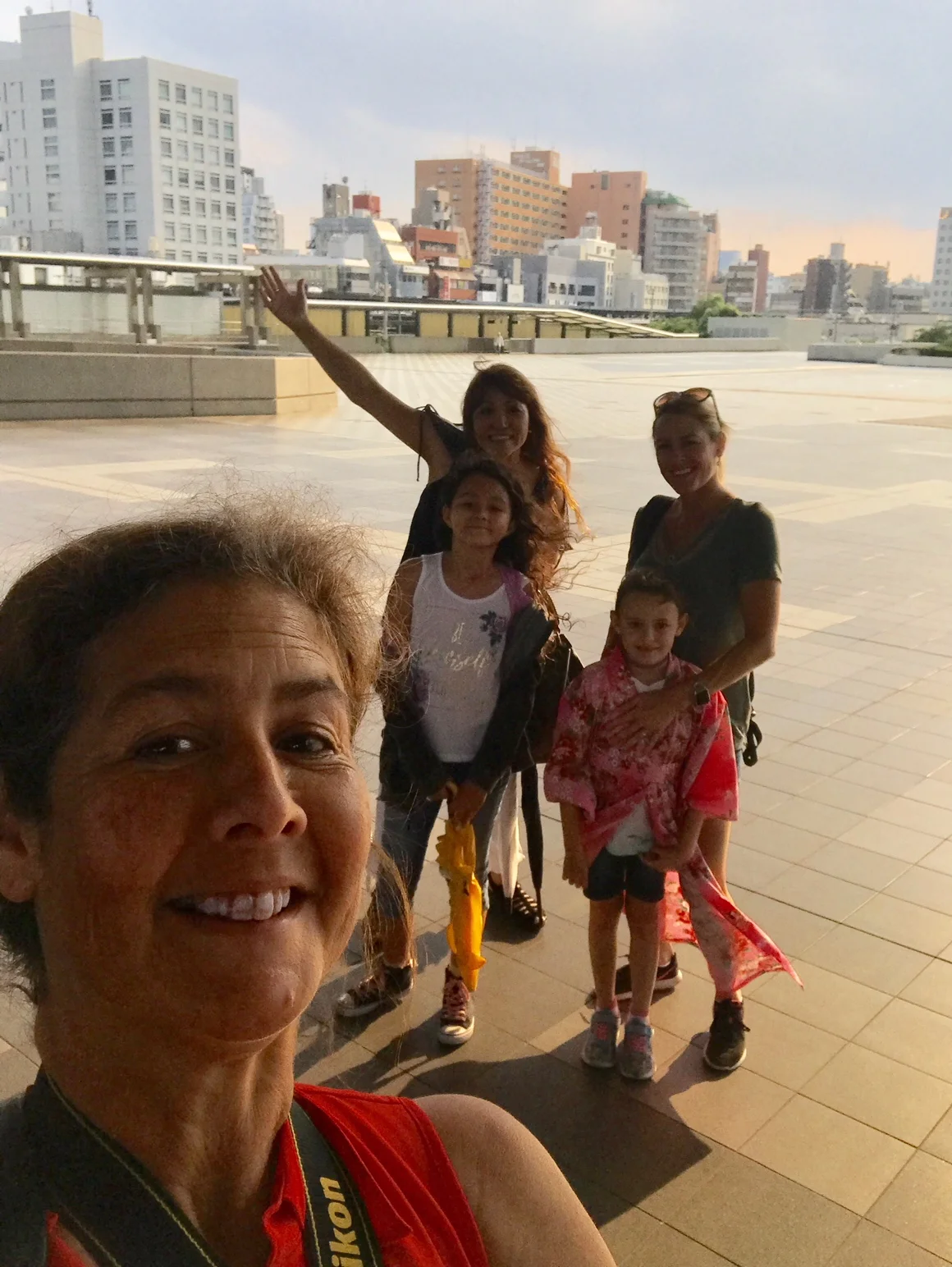 While we purchased tickets to enter, the girls engaged in an umbrella sword fight! Though nothing fancy, with the day turning to dusk and tall buildings in the background, beautiful colors and lighting made this simple picture one of my favorites. Frolicking, carefree moments of childhood...