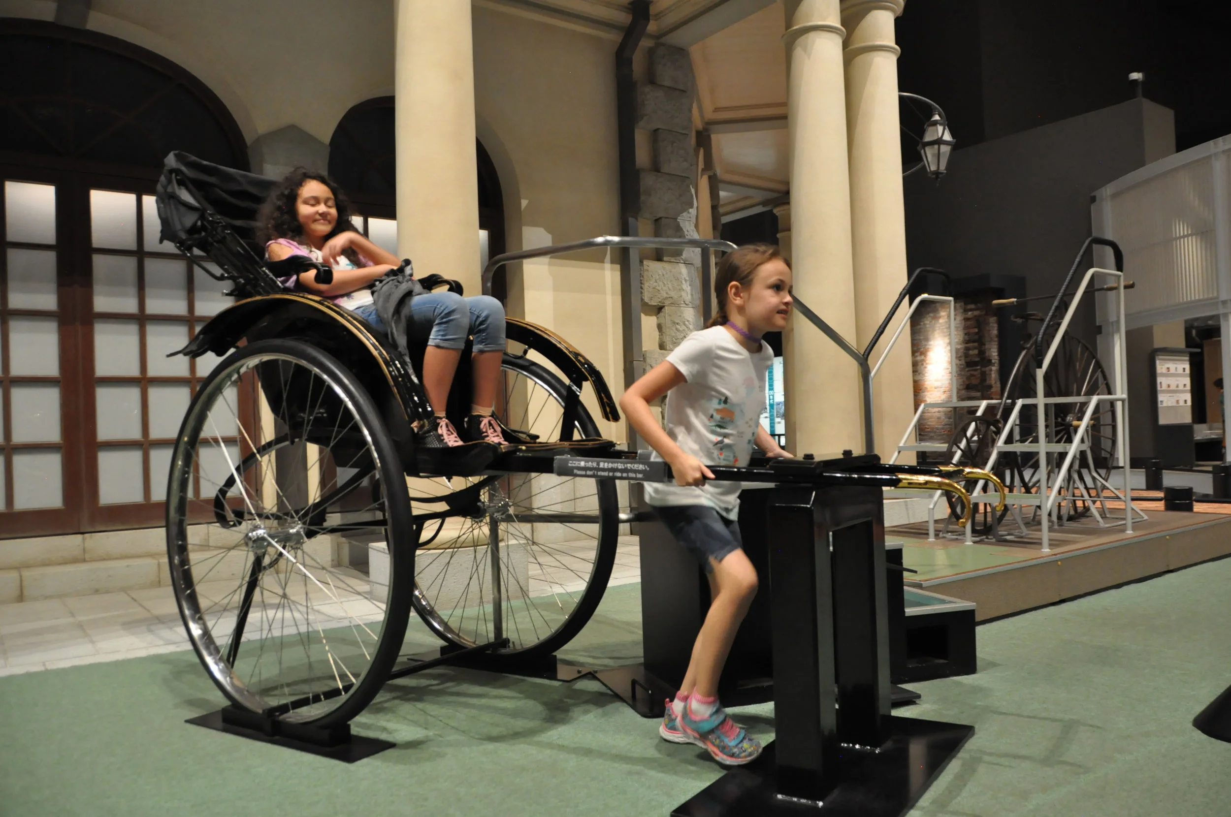 Modes of transportation... the girls posed and played on these for a good amount of time. I love museums that have hands on areas. It really engages the younger (and older) guests! Kids (and adults) can gather information on how the Japanese got around town. It is readily available on the internet or in books. However, reading it does not have the same impact as actually seeing... touching... climbing on these bikes and rickshaws. I was thinking horses pulled the rickshaw only to find out PEOPLE do the work! Wow!