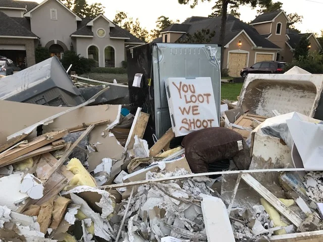 From the first day, people drove slowly down our streets trying to rummage through the debris. Imagine... we hadn't even processed what happened to us and they are trying to pick through our things! It may be junk but it's MY junk! Like many of our neighbors, we posted a “warning” sign.