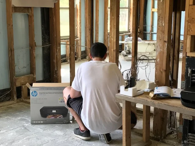With all of the paperwork involved with filing for FEMA, needing inspections by the insurance company so they could officially deny us coverage and searching for financial help, cleaning supplies, rebuilding materials, we needed to create a pseudo office. Jeremy was able to devise a makeshift desk, get the internet going and install a printer so I could take care of business.