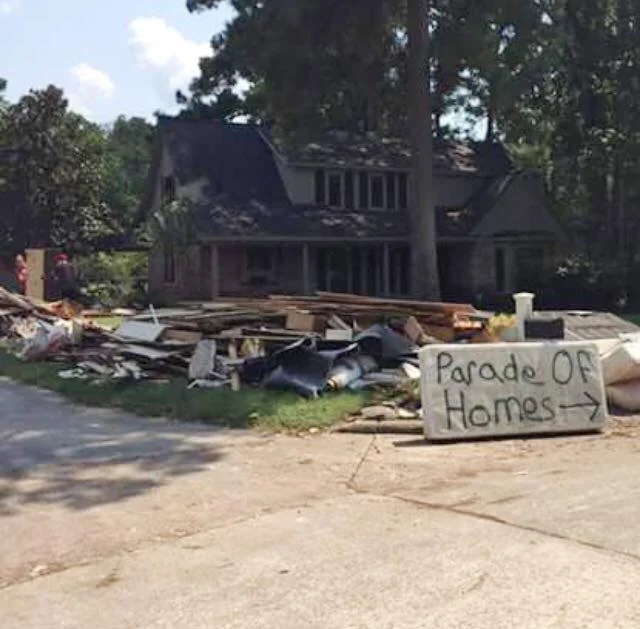 Kingwood, as a community, handled a devastating tragedy with grace and humor. One of my neighbors put this sign out on the street... I thought it was hilarious and boy, did I need a good laugh!!!