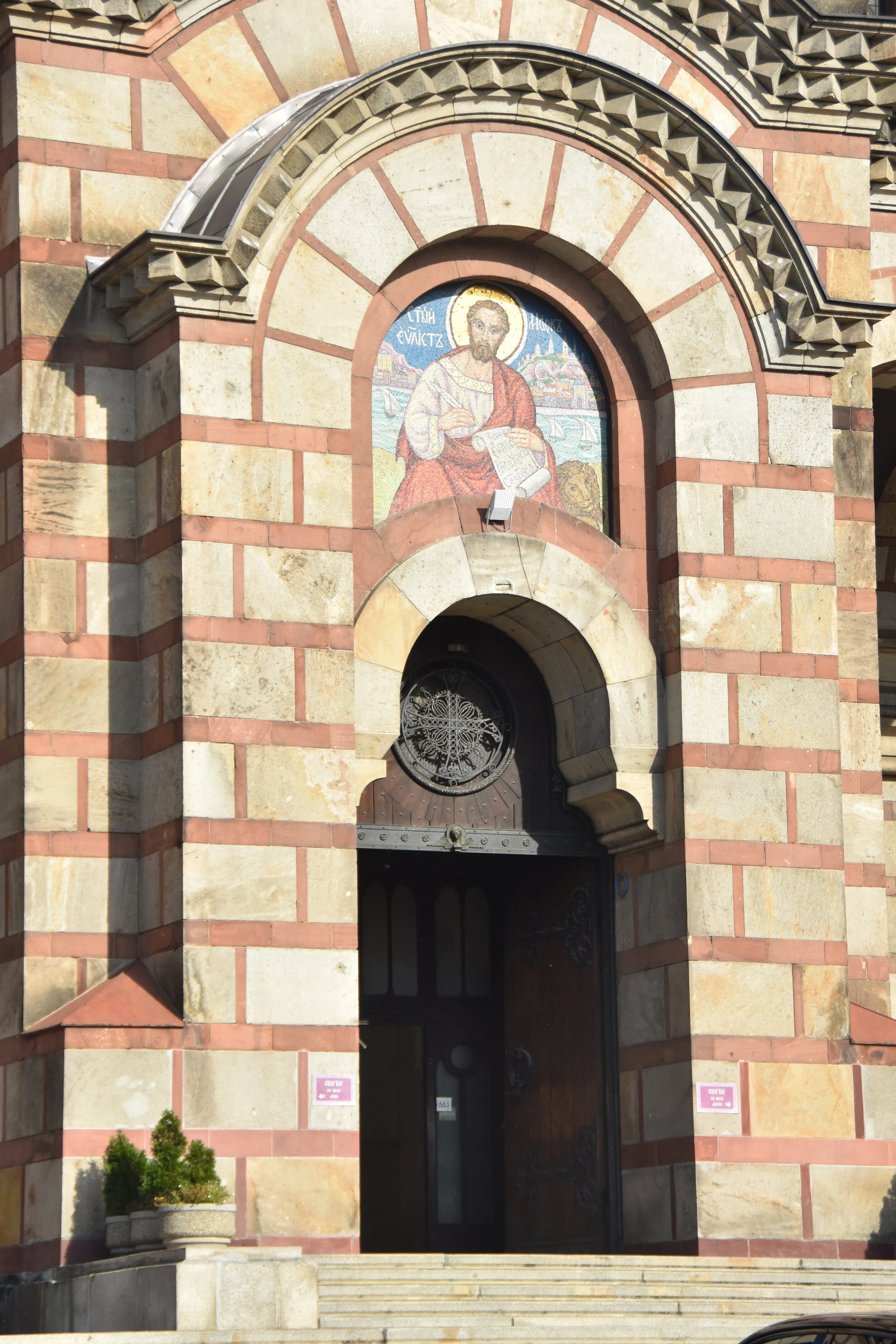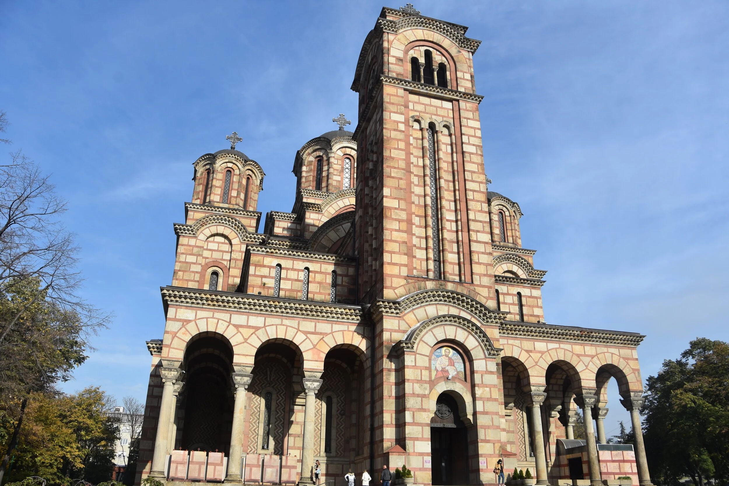 For two weeks, we have gazed at this church from our balcony. Lit up at night, bells ringing, it has kind of been part of our day to day life. It’s the first thing we see when we wake up and the last thing before falling asleep. The two tone Serbian-Byzantine style is remarkable. Built between two wars (WWI and WWII), it is protected by UNESCO. So different to see it up close, from the ground…