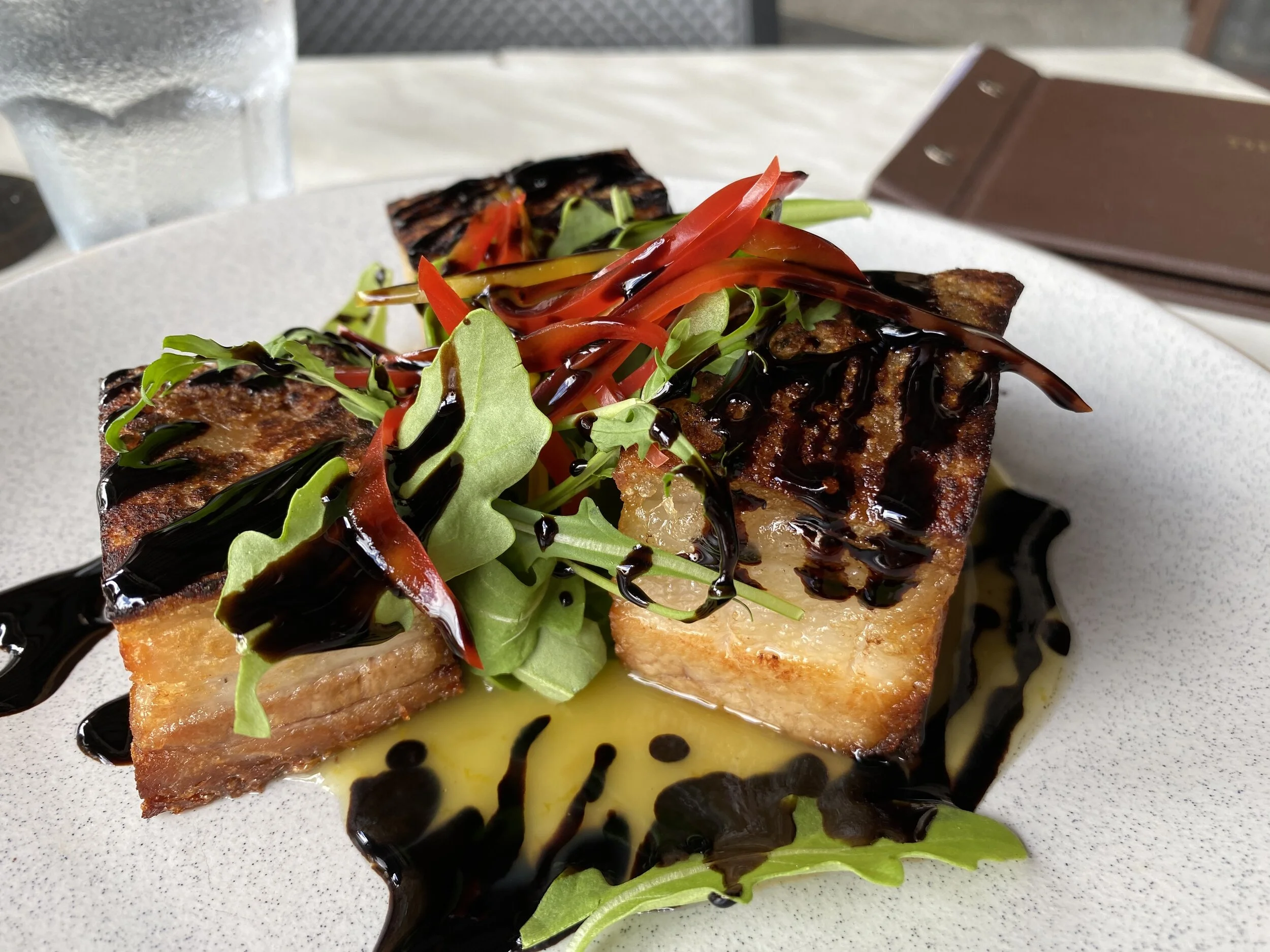 Sipping on our cocktails, watching the people made for a perfect dining experience. When my meal arrived, my mouth was instantly watering! Two appetizers were served... shrimp and pork belly. Oh. My. Gosh!!! So incredible! It made me want to try everything on the menu! Barry had a salad and pasta... I was so enthralled with my meal, I failed to take a picture of his OR the rest of my meal! Actually, my mouth is watering as I type this... just remembering the taste!
