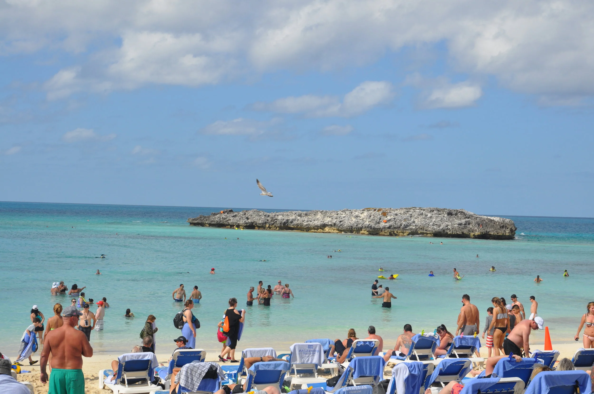 The first seating area was crowded. It seemed no one wanted to venture far into the island. Each seating section was equipped with bathrooms, cabanas and bars. A few bartenders from the ship had duty on land. Sunshine and beautiful blue waters made this a perfect day!