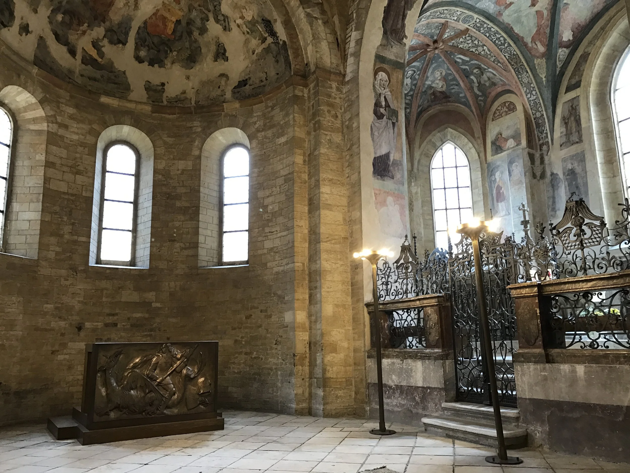 Once inside the castle grounds, we toured the Basilica St George. The rooms under the domes were very special... the wall brick, the ceilings a combination of paintings and intricate tile work. Arched windows added more character.