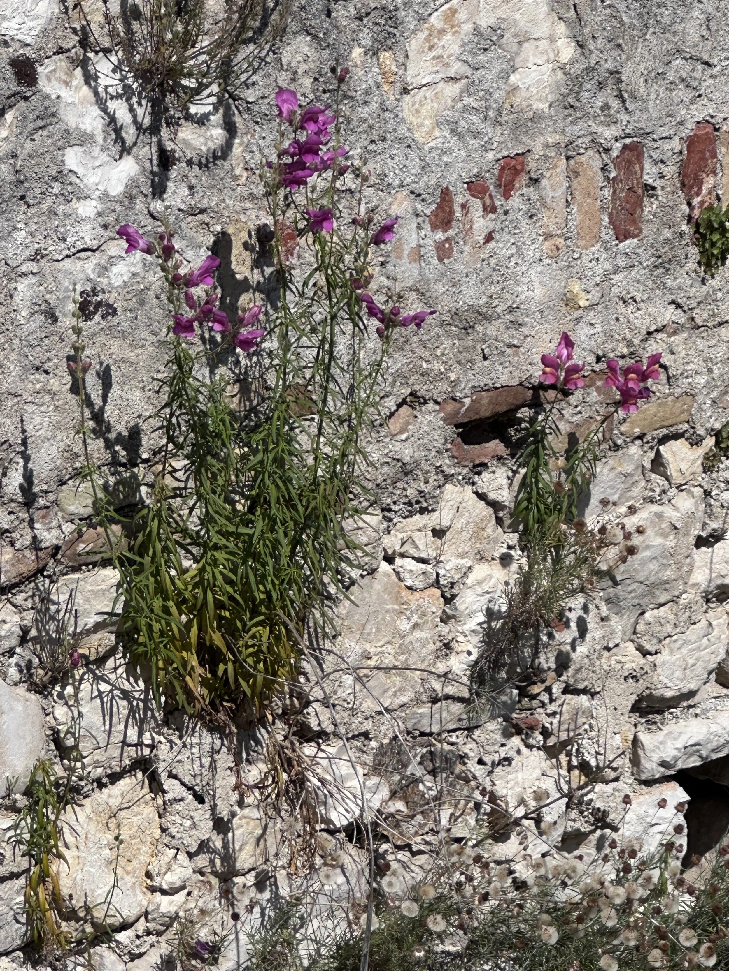 On the walls along the canal, flowers grew out of the rocks. There were so many… up and down the wall.