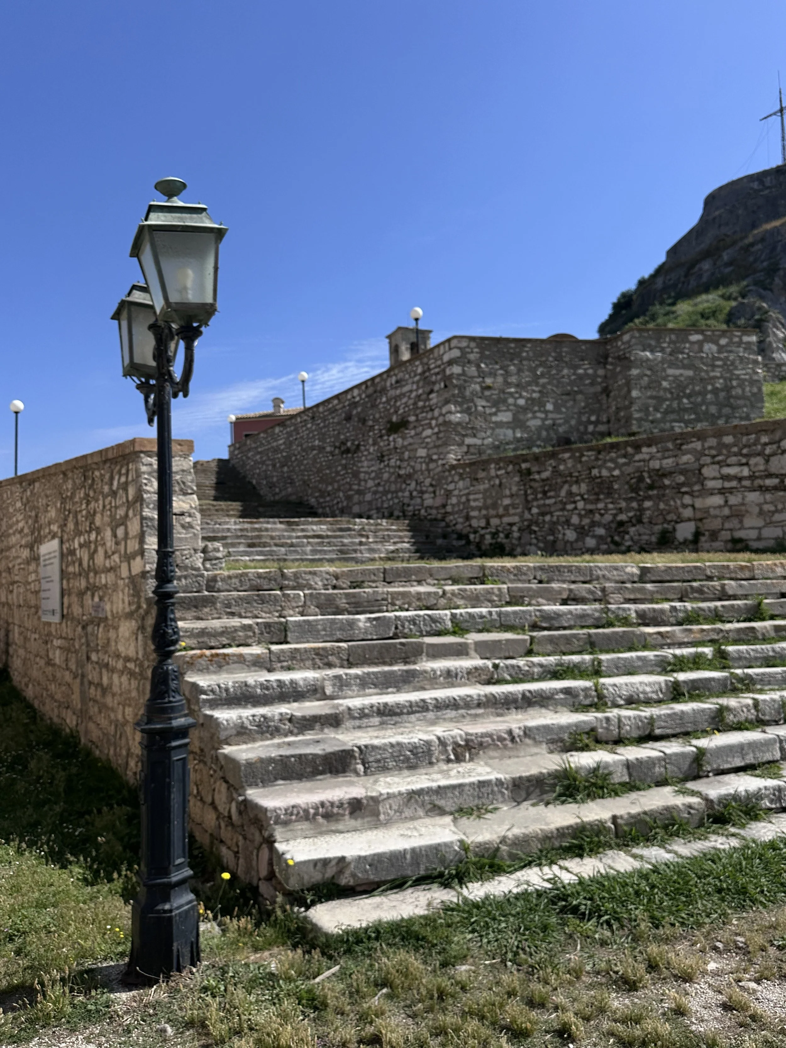 Still inside the walls of the fort, we explored the other side. Thinking that the church side was the highlight, we were surprised to stumble across Ionian University Department of Music Studies. Directionally challenged, I can’t say if the school was north, south, east or west of the church grounds but I can say… when you first walk in through the arched tunnel, the church is to the right and the University is to the left.