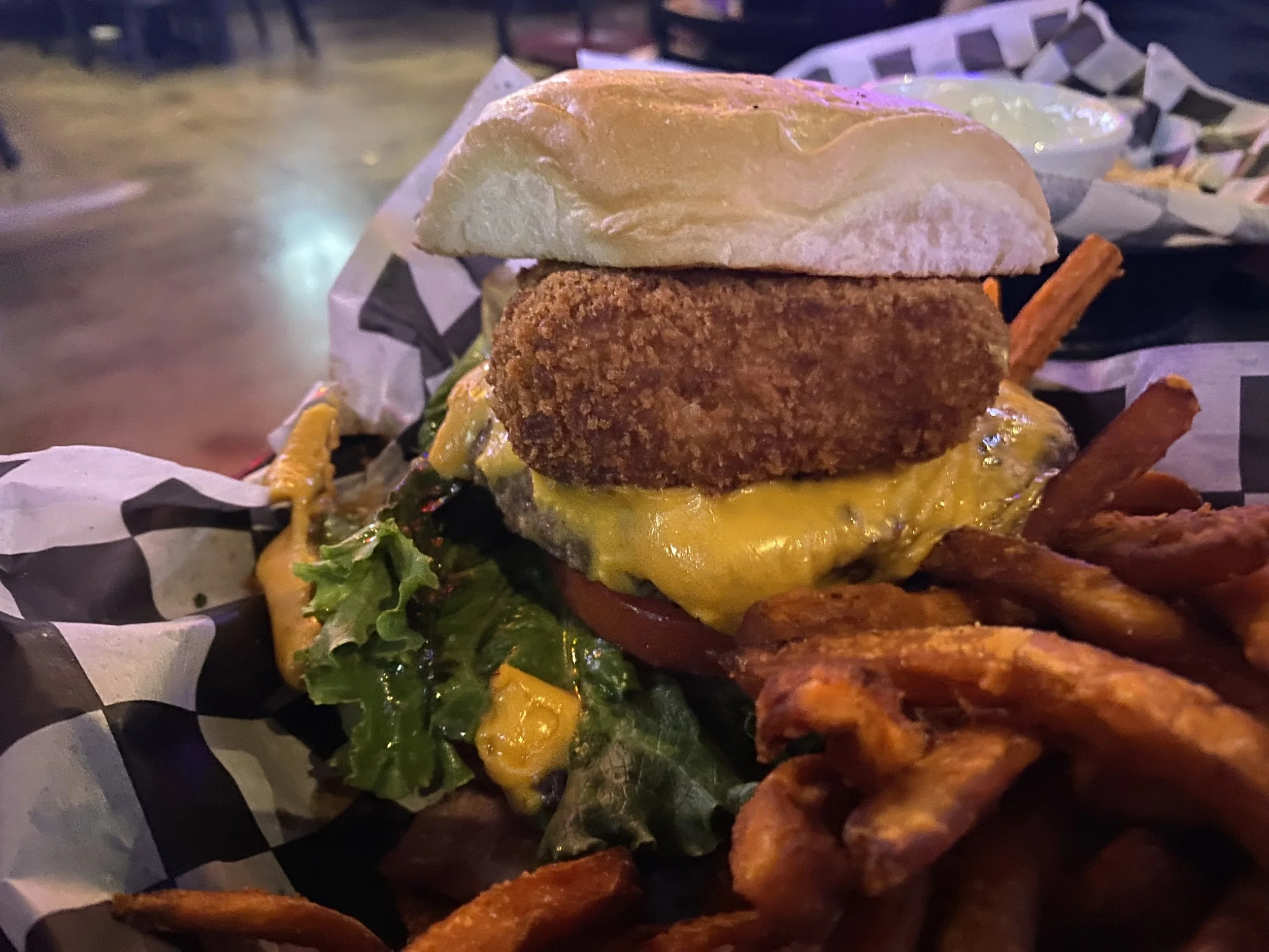 With my dietary restrictions, I usually order tacos when we go out. Tacos, tacos, tacos. Unfortunate considering the decadent items on this bar menu! Pictured above is baked macaroni and cheese on top of a burger. Biting into it allows the juicy, gooey cheese to drip out… rich, very rich but from what I’m told, it was incredibly delicious!!!