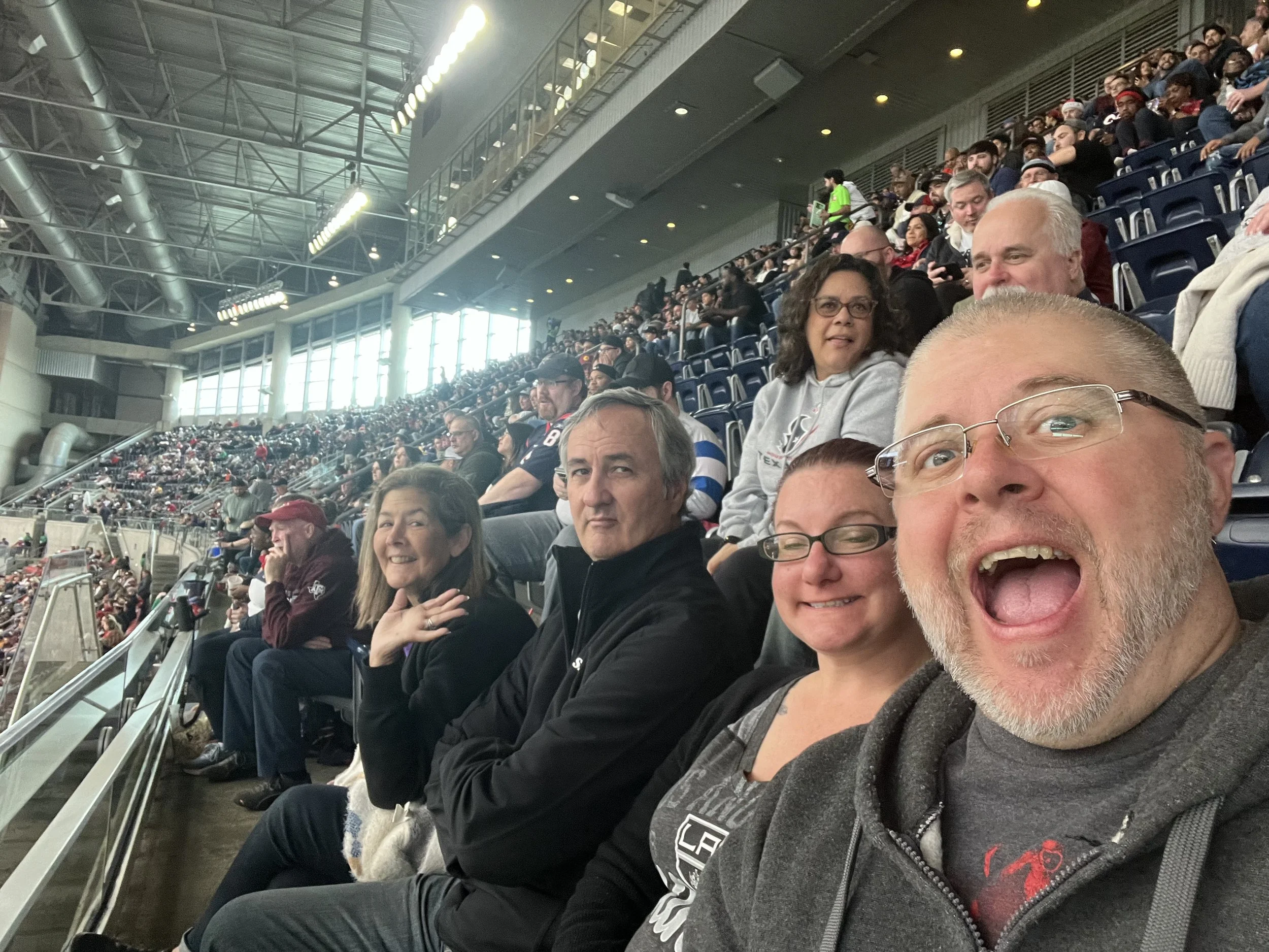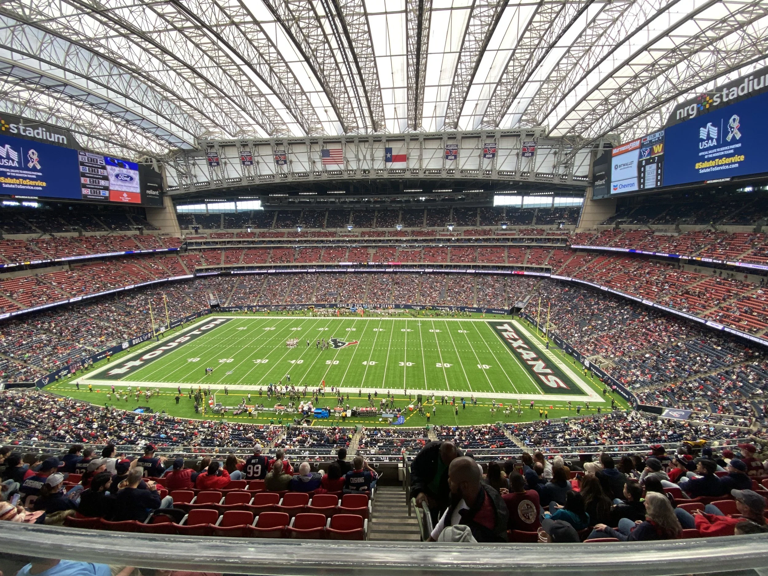 Sitting on the rail… up high… can be a challenge for those of us afraid of heights. As long as you focus on the food, the scoreboard, the crowd and the field… it’s all good! The Texans lost but it was still a fun day!