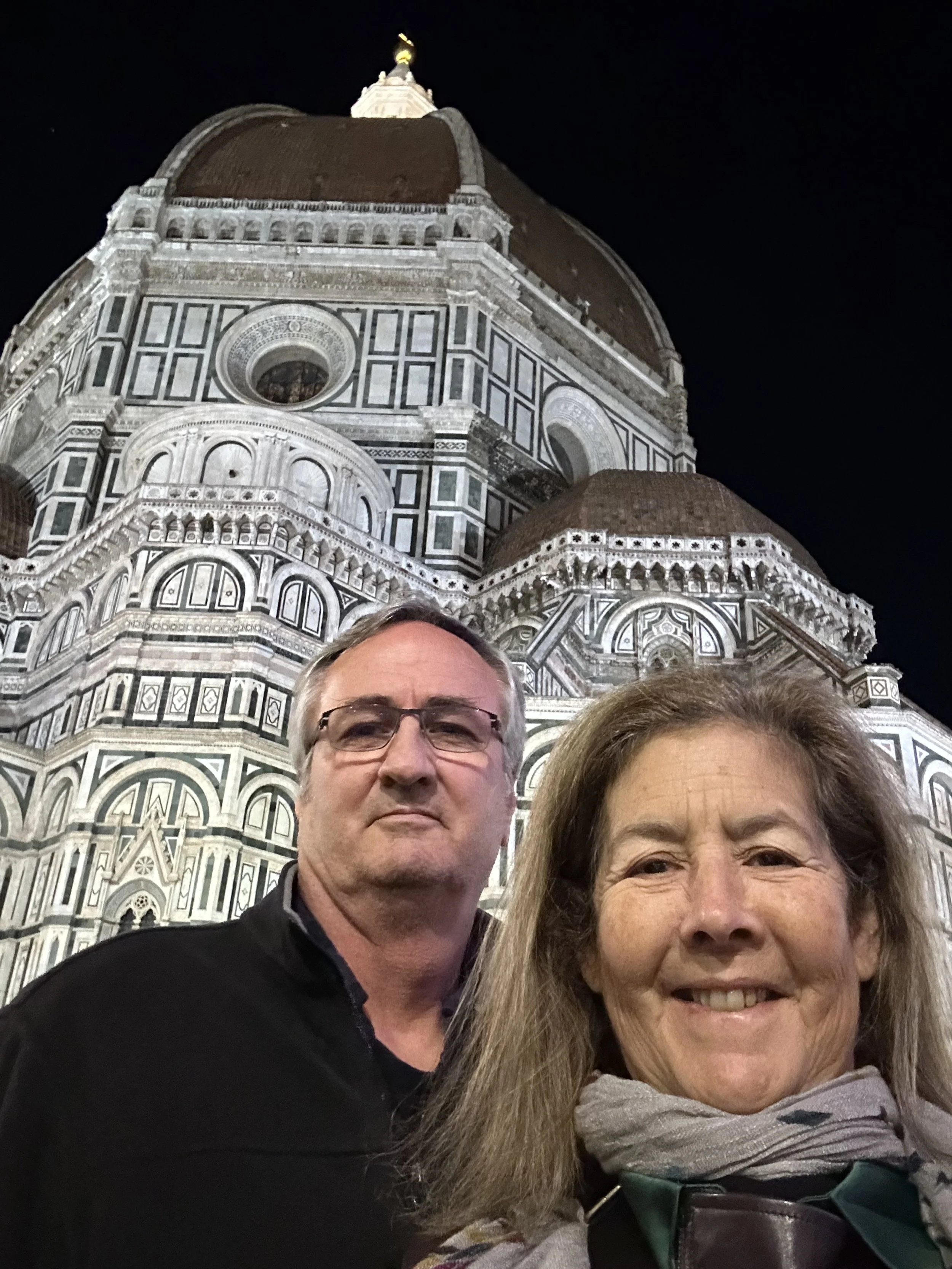 Settling into our seats, we ordered a bottle of wine. Barry had lasagna and I had Pasta Carbonara. As is usually the case with me (for some crazy reason), the simple meal was not uneventful. There always seems to be something out of the ordinary happening! This time was a power outage. As we neared the end of our meal, the lights went out. Everyone cheered… but continued dining, talking and laughing. After about twenty minutes, the lights came back on to another round of applause and cheering. But they only stayed on for about thirty seconds and they went out again. After a bit, they came back on and stayed on. It wasn’t bothersome except for the outdoor heaters went off… and Florence was a bit chilly this trip.