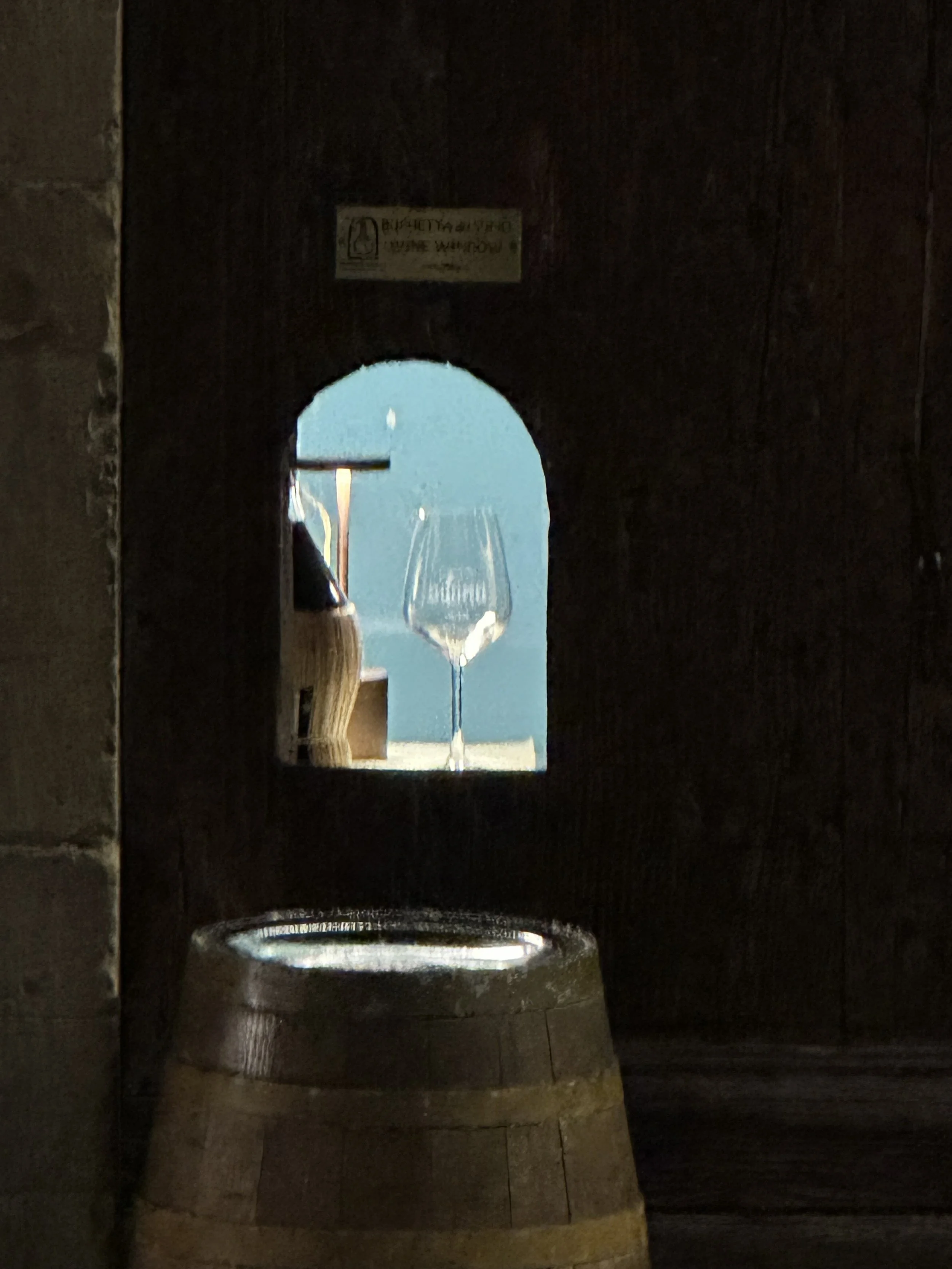 After napping and enjoying the aerial view of the Piazza, we decided to try eating again. Not really hungry, we figured a glass of wine and an appetizer would do the trick. As we walked, I realized this was the wine window I visited in the spring.