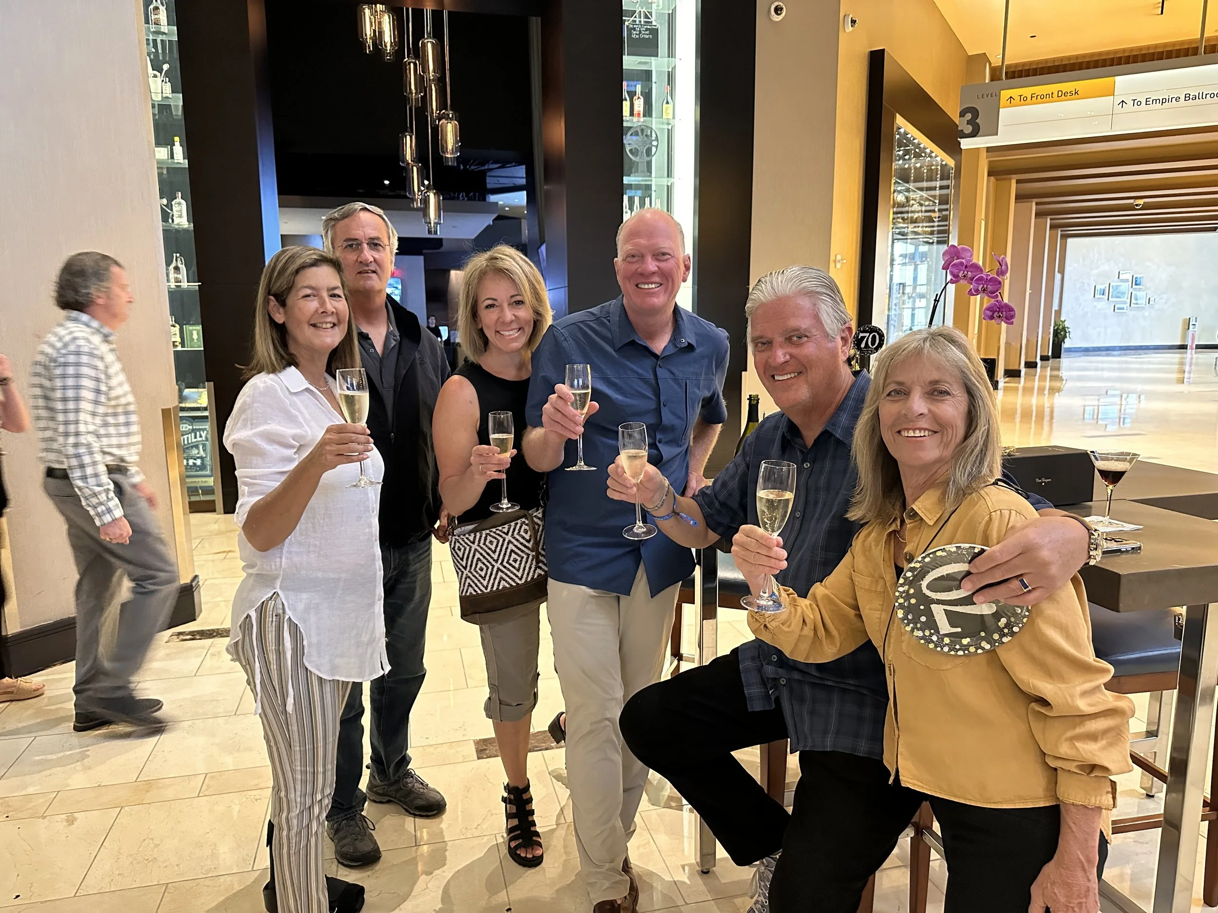 Starting with a selfie… other guests in the bar thought we needed help. How sweet that people sitting at the bar took the time to get us a couple of group photos. There was much reminiscing over years in the casinos working together. The good old days… The crazy days…