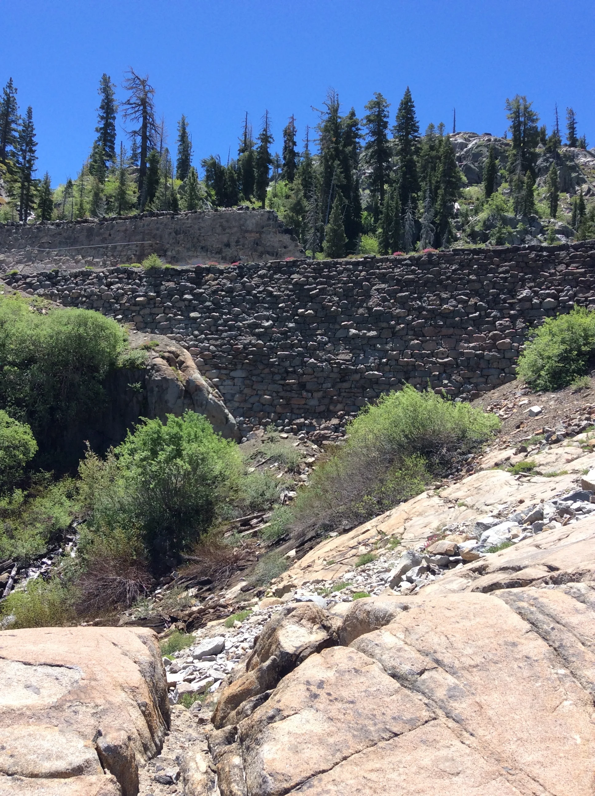 Driving past Donner Lake on Old Highway 40, we came upon the sign shown on my cover. It describes how over 8,000 Chinese workers worked for eight years to build a railroad from Sacramento to Utah. This section is in the Truckee area of California. They build this rock wall as well as tunnels to shield the trains from extreme weather common to the area.