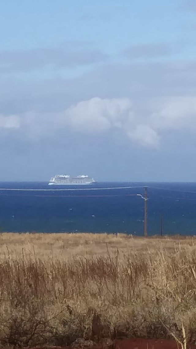 In my excitement, I posted something on Facebook and one of my other besties (haha) was awake and raced in her car to the Waimea Pier. On her way there, she called and was screaming because she could see us! This photo was taken from the pier… I also received hilarious videos of my friend yelling to me. Other’s around her probably didn’t know what to think!!! But how fun to have someone you know seeing you cruise and talking ship to shore!