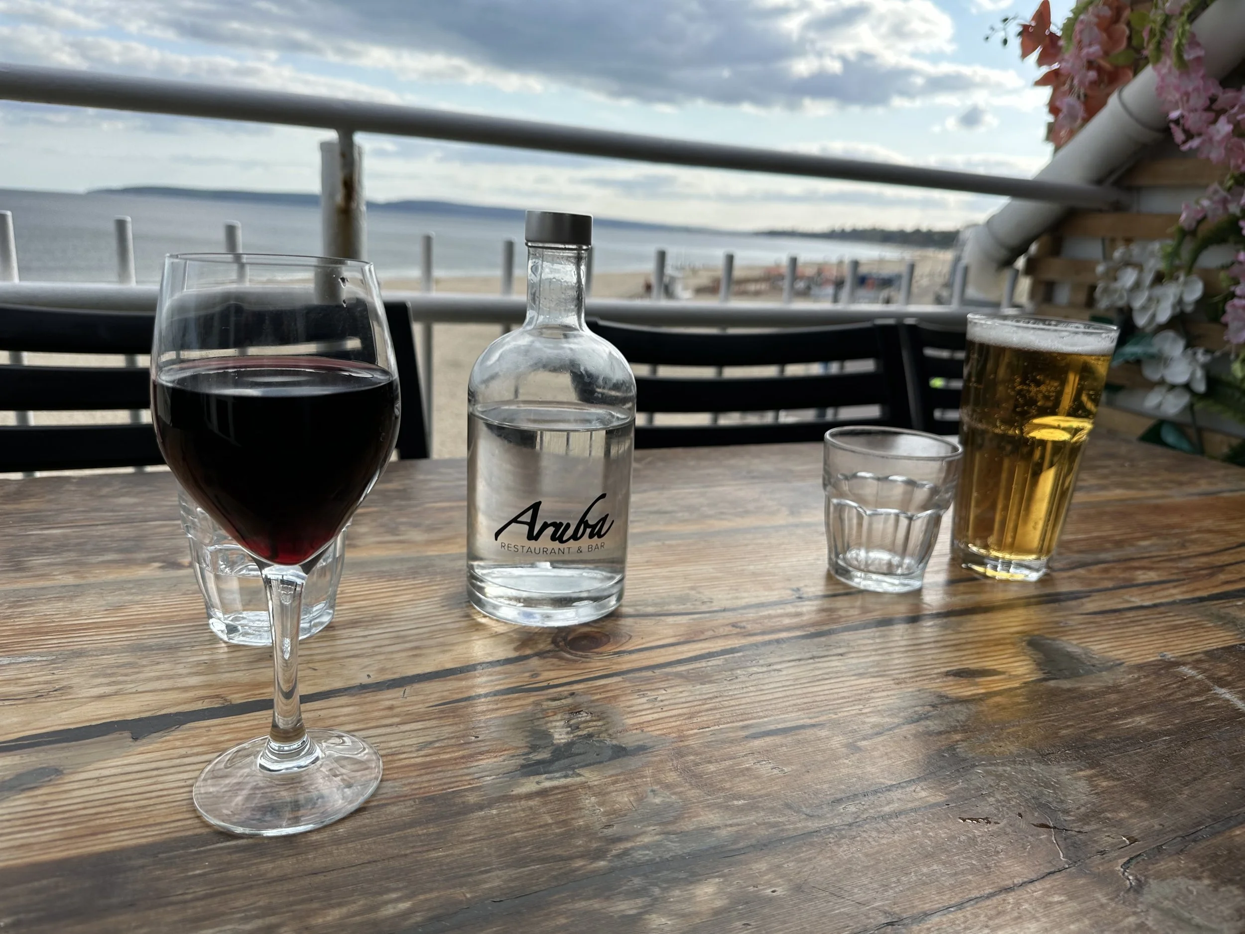 With the sun beginning to set, we figured we better get to walking… Back to our hotel before dark would be nice. Still, we relaxed, watched the ocean and sipped our wine/beer. It’s been the perfect day!
