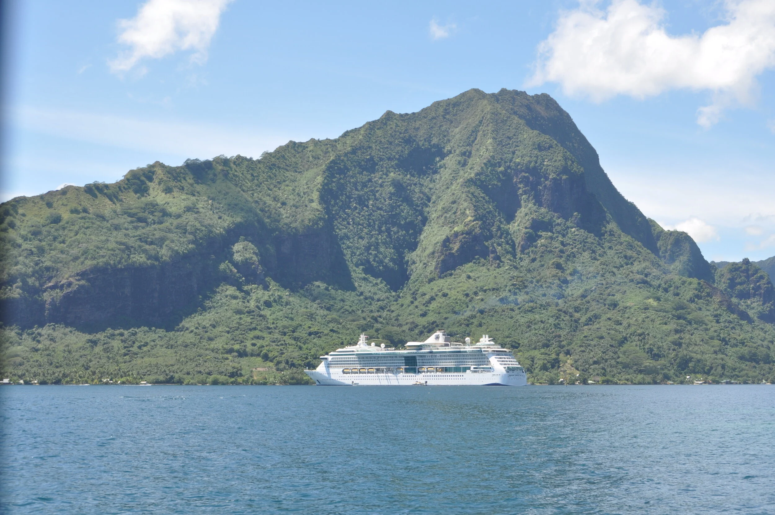 Radiance of the Seas left Pepeete at 11pm and sailed out into the Pacific Ocean. Once out in the waters, she sailed around to the North side of the island and into the bay where guests could tender to shore. Feeling the ship slow down and drop anchor, I opened my eyes… WOW! Absolutely gorgeous! The green mountains with clouds hovering created such a great photo op!