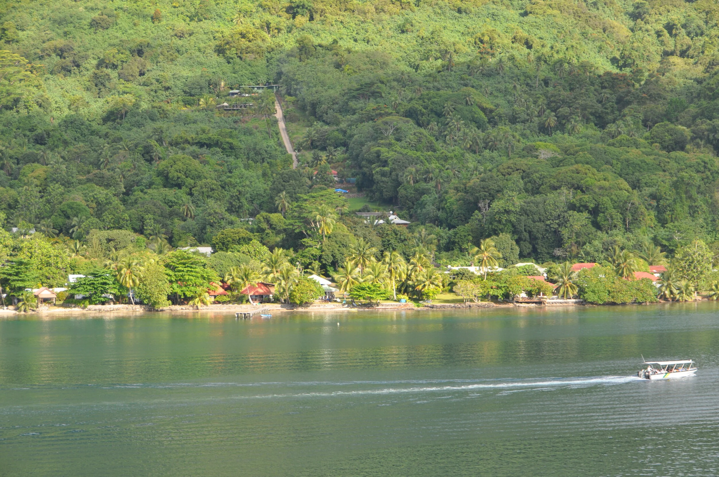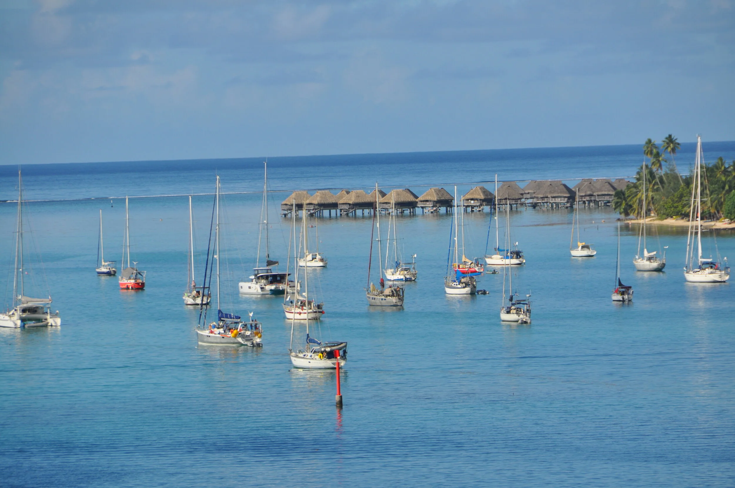 Despite the fact we barely saw any of the island on shore, we sensed a certain vibe that motivates us to return. Next time we will have a better idea of where things are. Our eyes were drawn to a red roof across the bay, on the shoreline. We both imagined lounging by the seaside of the picturesque island. Looking up at the nearby accommodations, I found the splash of red to be Polynesian-style bungalows in a communal living situation. Separate sleeping places with private bathrooms right on the water. Fare Viehere looked to be very charming and very reasonably priced (waterfront 151 Euro/night). Nearby on the water… the most exquisite villas. Robinson’s Cove has three bedroom, two bathroom fancy homes for 2500 Euro a week! Yikes!