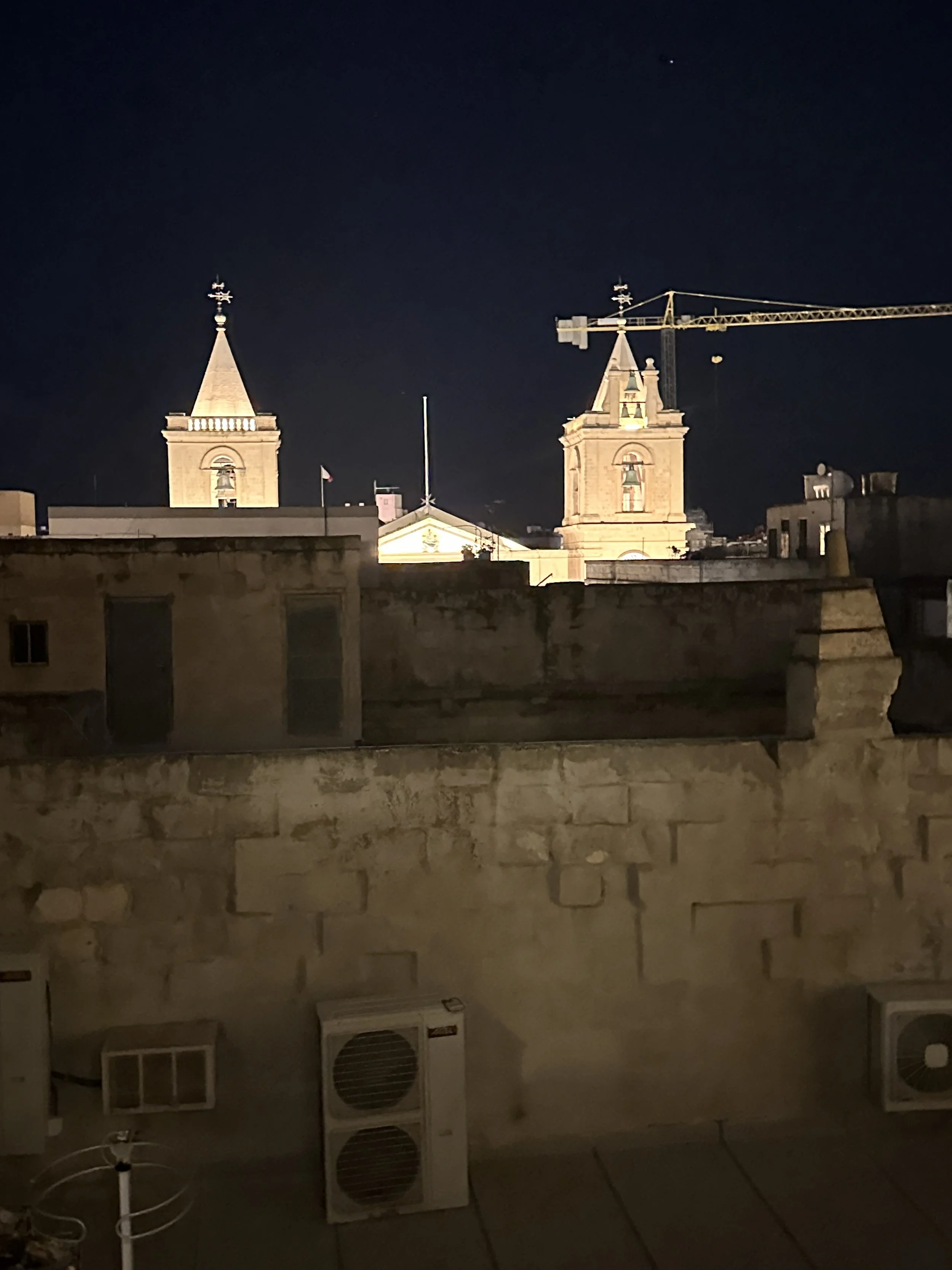 Our outdoor restaurant was bordered by partially destroyed pillars and walls. We took a closer look on our way to feed Barry some gelato. This area is called Pjazza Teatru Rjal. Currently used as an outdoor theater, it was once the Royal Operal House. Built in 1860, it replaced the Manoel Theater which had become to small with a growing interest in opera. I will find out more about it when I see during daylight. What I do know is that it was destroyed on Tuesday, April 7, 1942, by Stuka dive bombers. Coincidentally, that is the same date that Barry’s Dad was shot down over Antwerp.