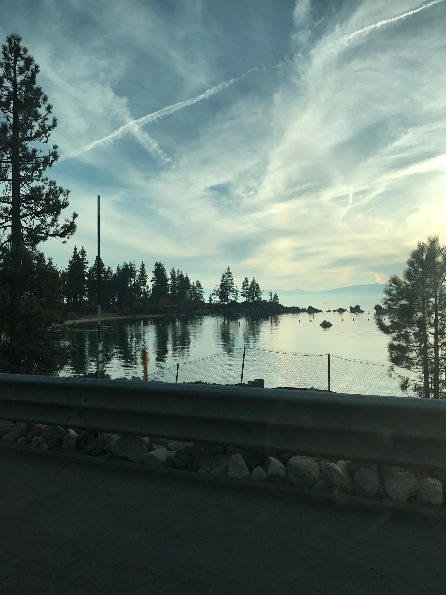 After the wedding, we drove back to Tahoe. Continuing on with my jam packed weekend, we headed toward South Tahoe on Hiway 28. Lake Tahoe glistens as the sun sets. Wispy clouds paint the sky.
