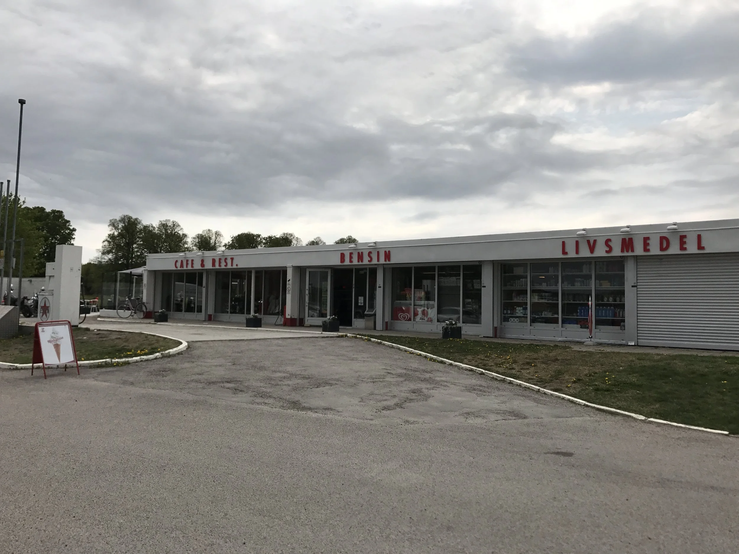 Outside of Skokloster Castle is a little gas station. I thought it odd when our friends said they were taking us to lunch at a gas station. But boy, oh boy, it was a fun experience! We ordered at the counter... the signature burger and a beer. It was beer-thirty... We found a little spot in the outside seating area to enjoy our lunch.