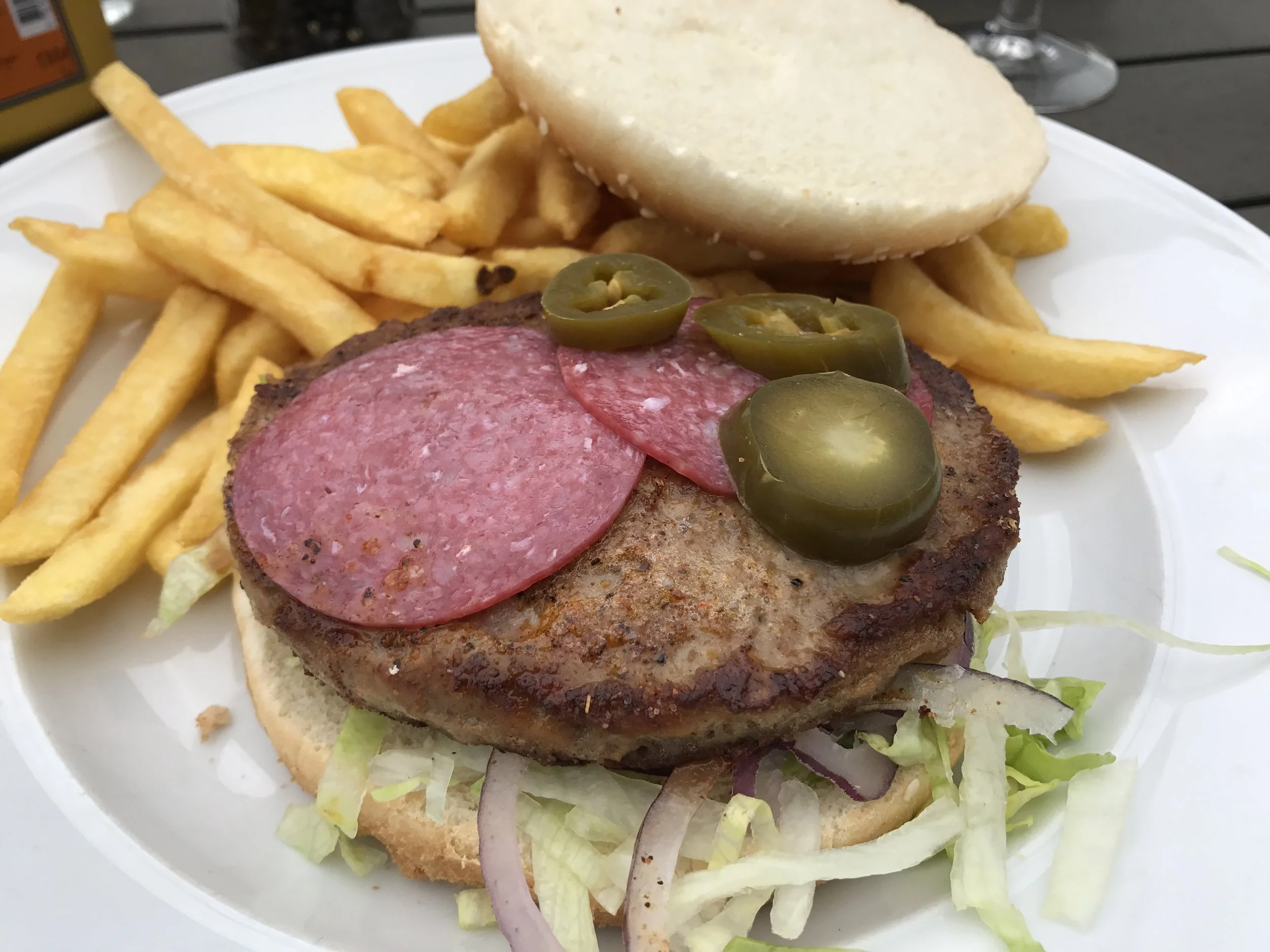 Sitting at our outdoor table after ordering, we enjoyed a beer while waiting. The burger at Skokloster Macken was absolutely delicious! We all ordered the BBQ Mackburger with fries. The burger was made with a piece of salami, jalapeno, along with the regular fixings. To finish it off... and make it even more special... on the bottom of the burger is a layer of tasty teriyaki sauce. The perfect finish!