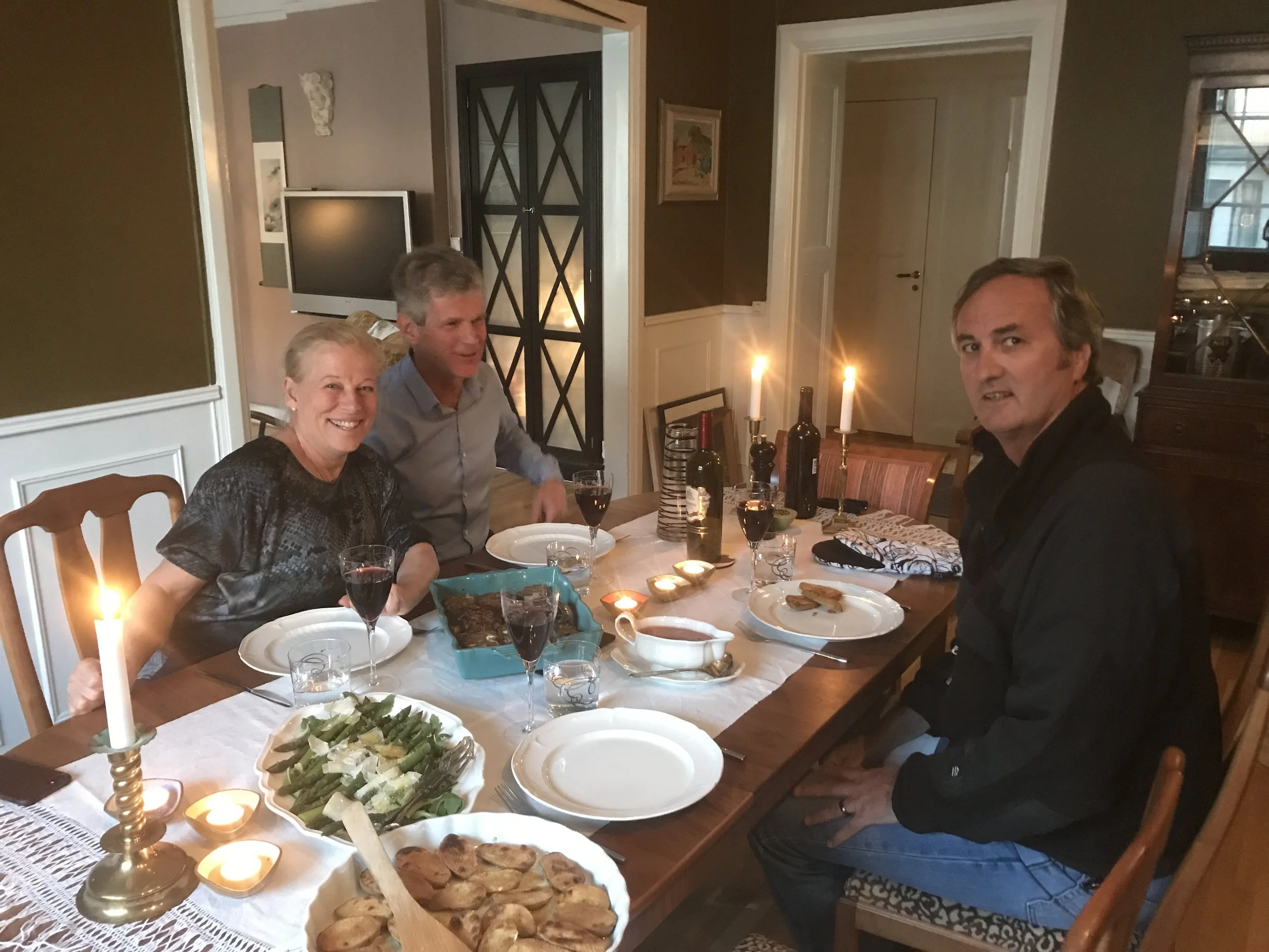 Our castle touring came to an end and we met in Solna at our friends' flat. They had popcorn and bubbly to hold us over until dinner.