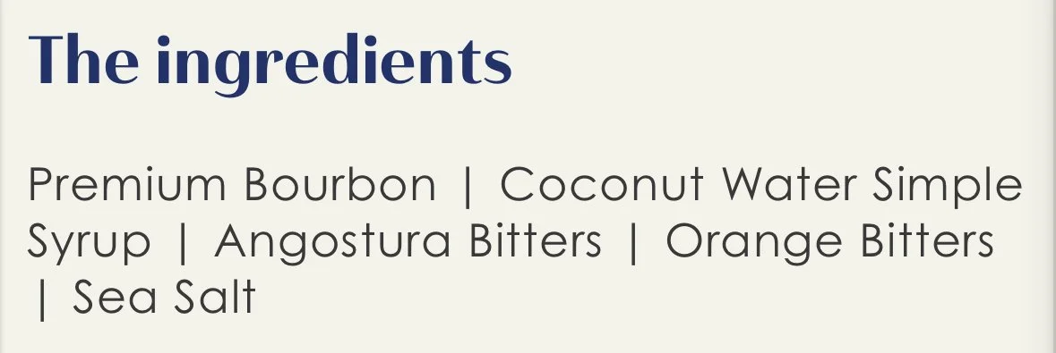 Yep… an unknown Bourbon… coconut water, which has never been an ingredient before… not the usual bitters and sea salt. Once delivered, hubby was pleasantly surprised at how good this cocktail turned out. My wine was also nice.