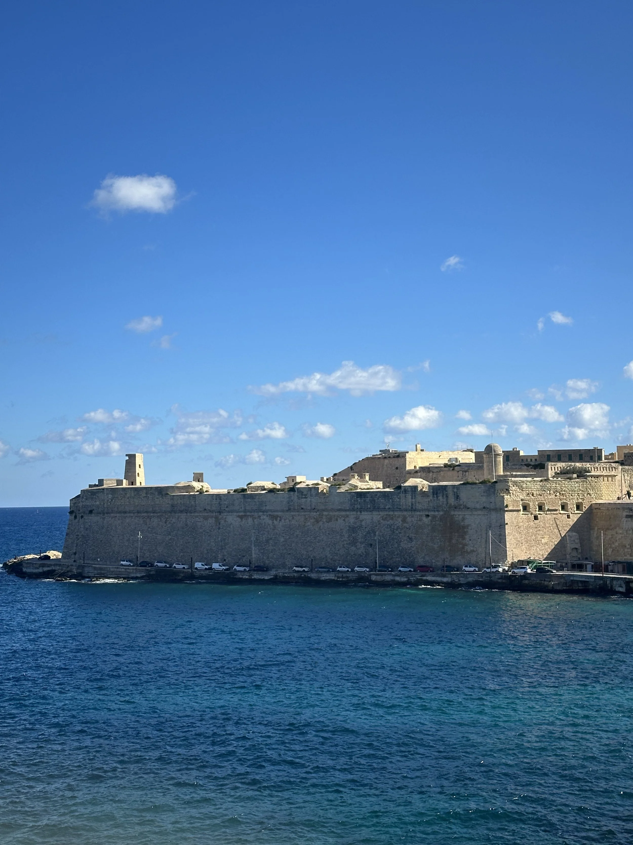 To Barry’s left, Marsamxett Harbor. From here, you can see across the waters to Fort St Elmo. The fort in the distance was our intended destination.