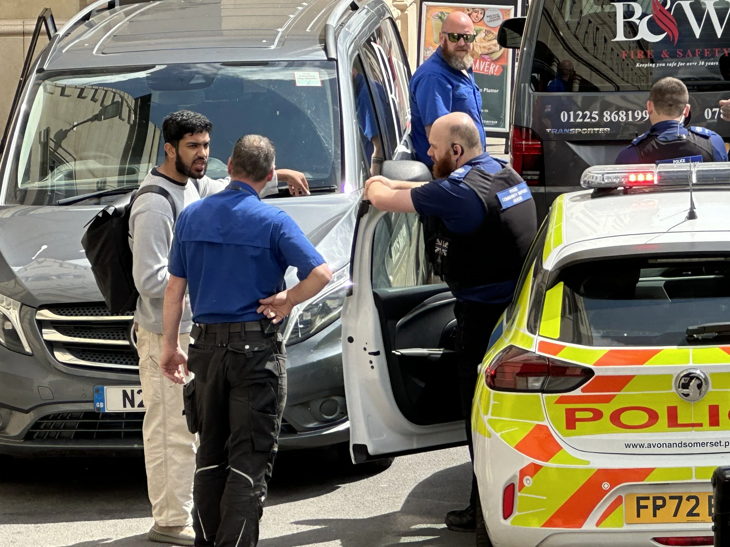 Oops… this guy must have done something fairly serious. There were several police cars at the site. Officers talked to the man… waving hands and looking pretty angry. We didn’t want to be so obvious staring, so we have no idea of the outcome.