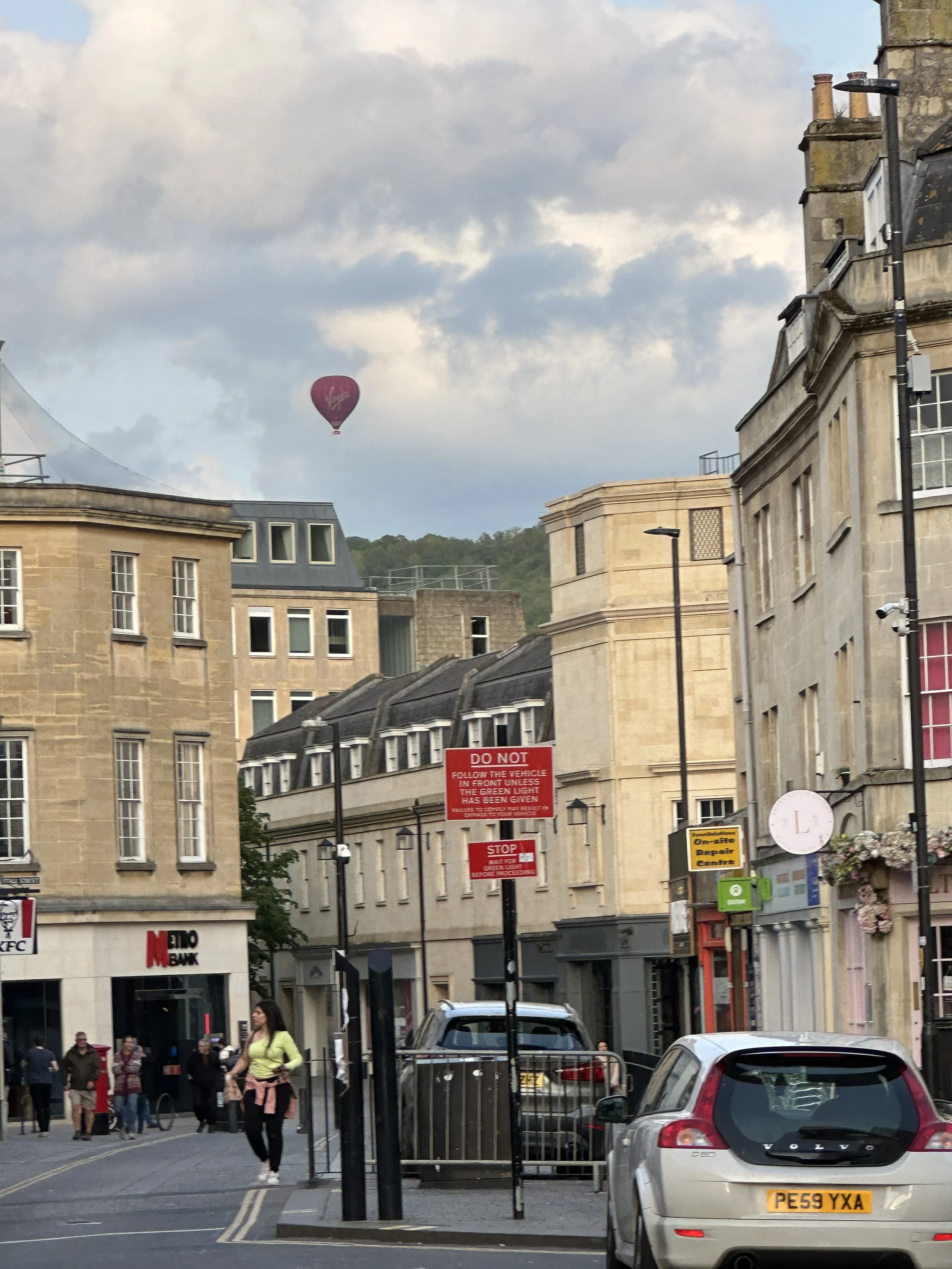 Heading toward dinner, we noticed a hot air balloon hovering over Bath. That would be fun… viewing the spires from above! With the River Avon and the historical sites this town has to offer, an aerial perspective would be amazing! Maybe next time…