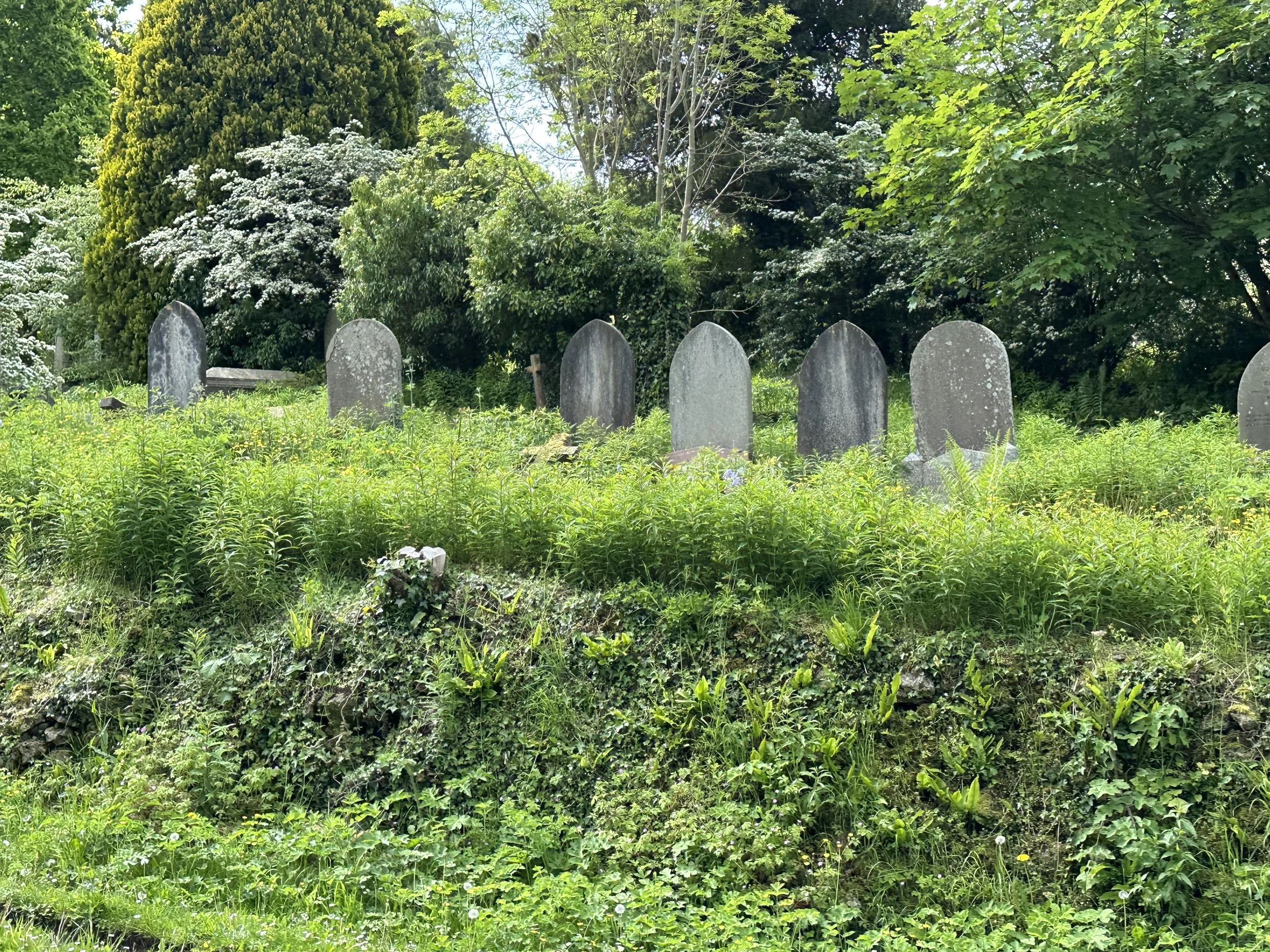 Tucked away amongst the estates, we passed by a cemetery. It would have been nice to spend some time in the main part of the grounds where the large tombstones are. Instead, I was only able to snap a quick photo of some small plaques.